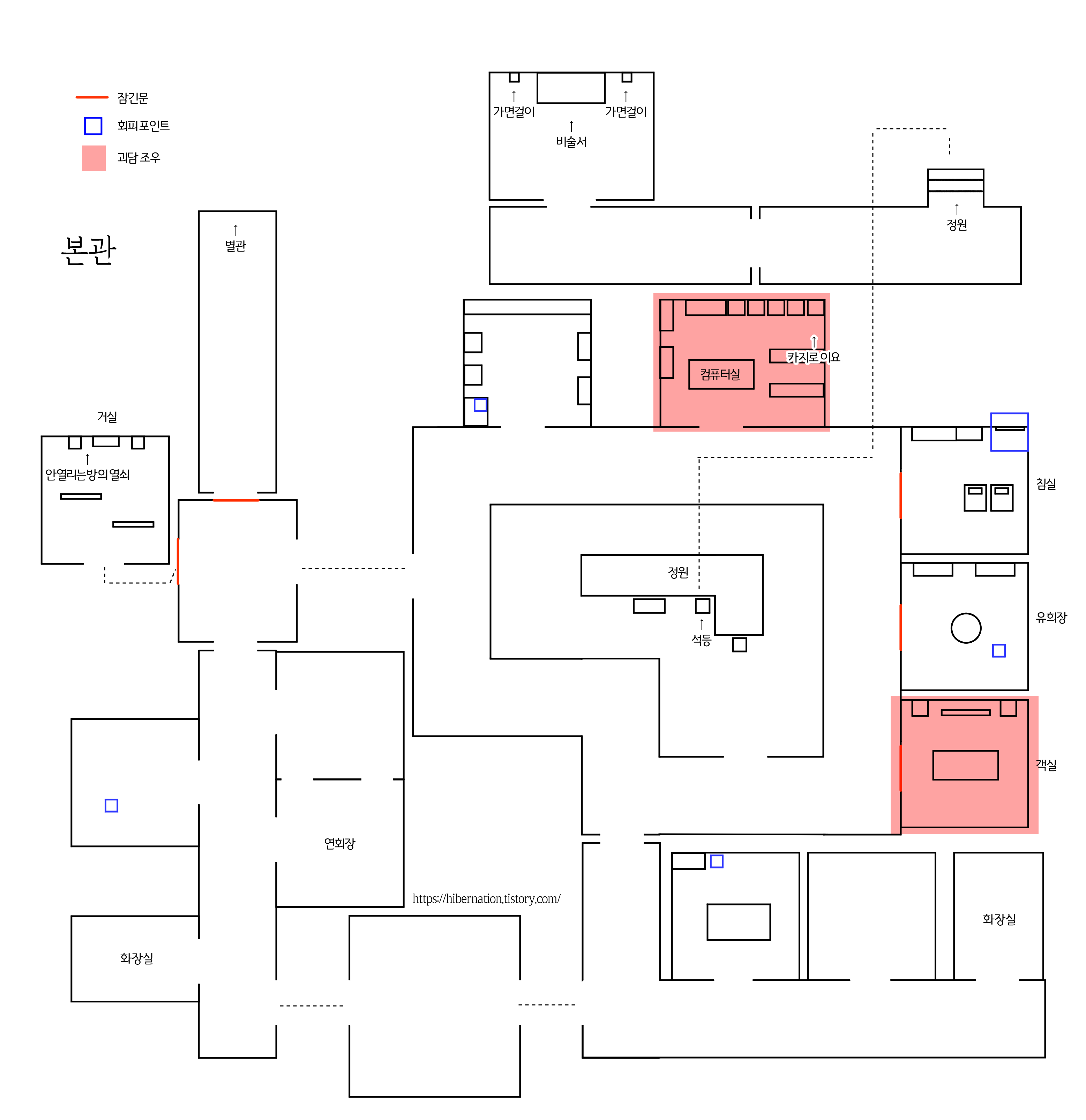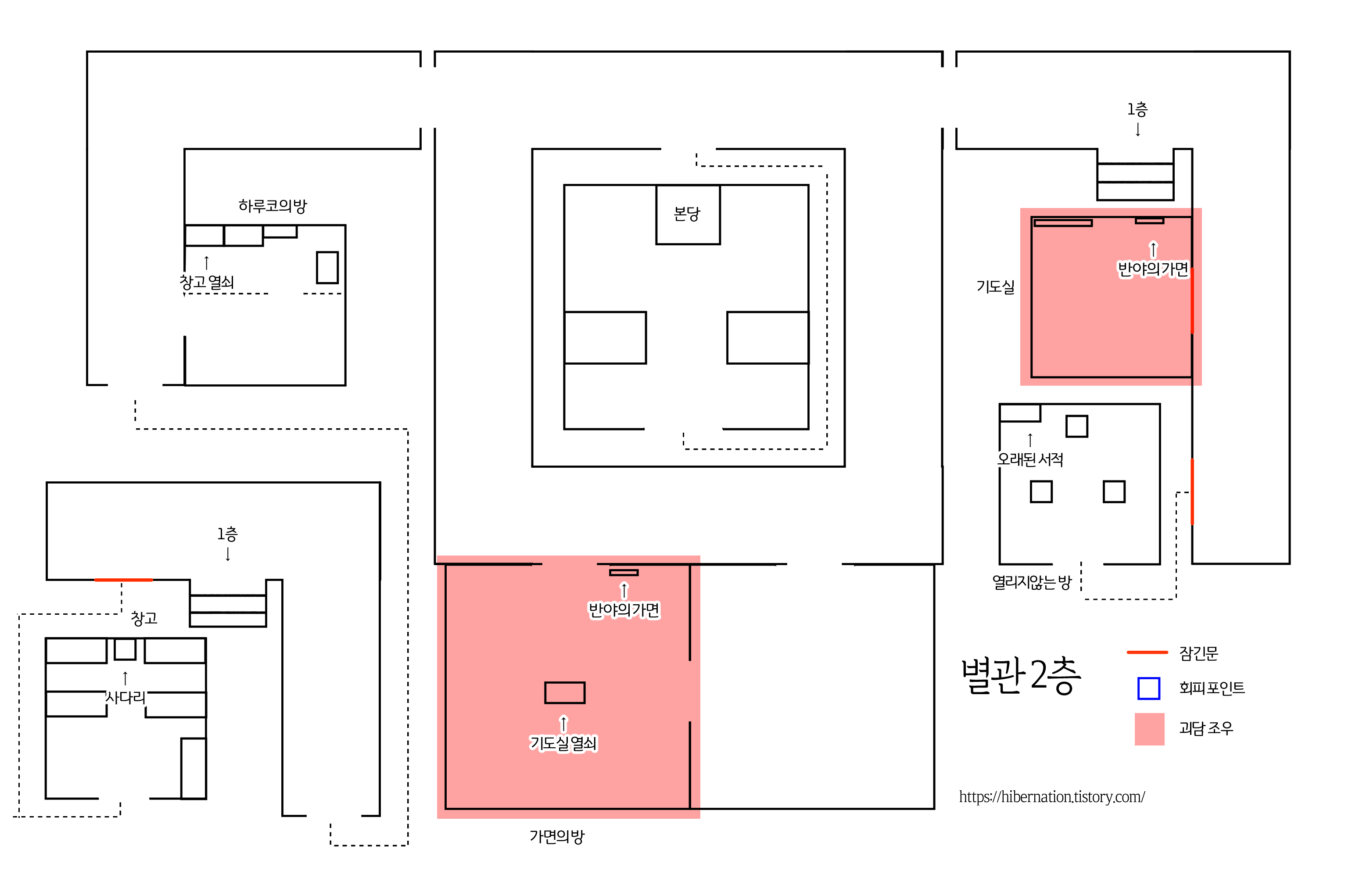 Tip. 가면이 있던 방이 문이 양쪽으로 나있고 바깥도 돌아서 올 수 있게 되어있어 따돌리기 쉽다