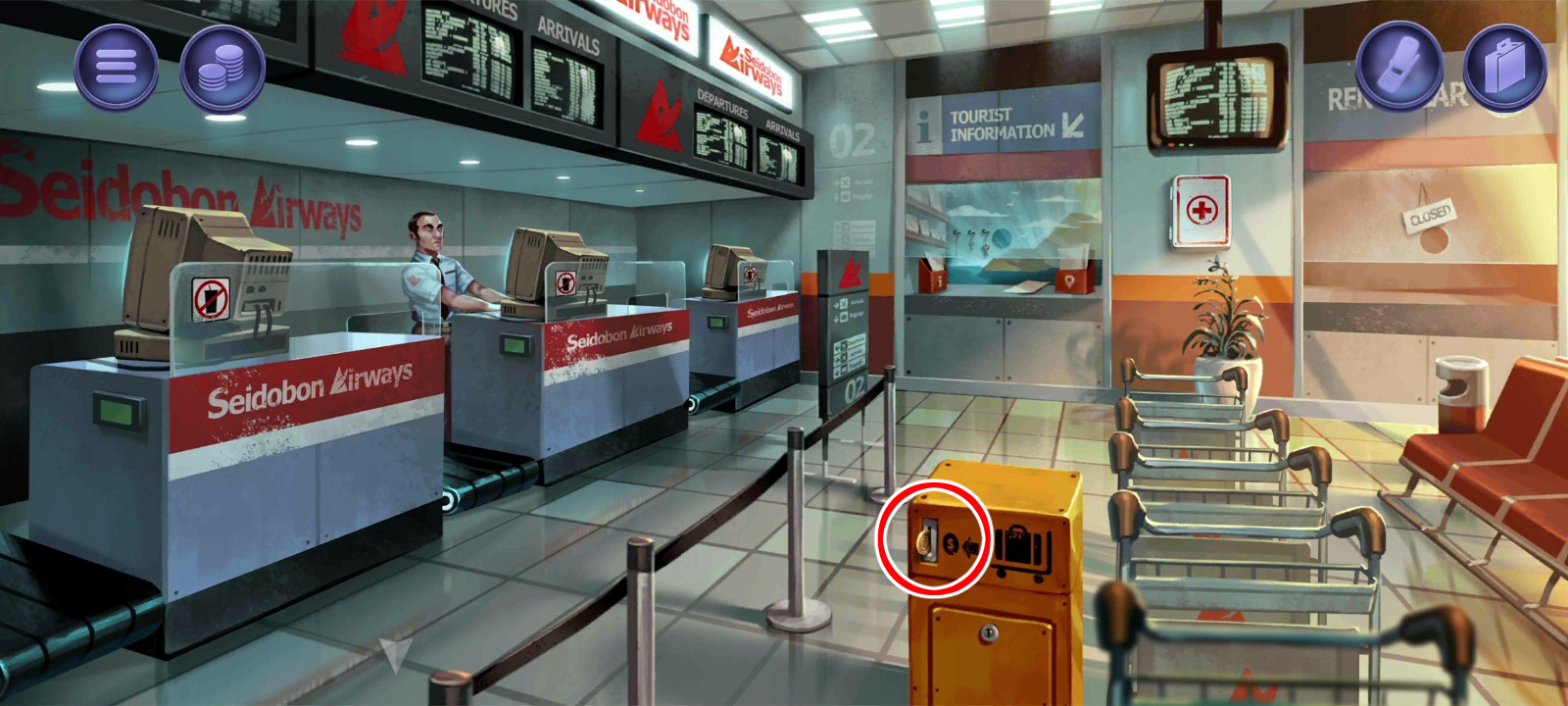 - 탑승권 수속대 옆 수하물 카트란에 수하물 카트를 반납해 동전 획득