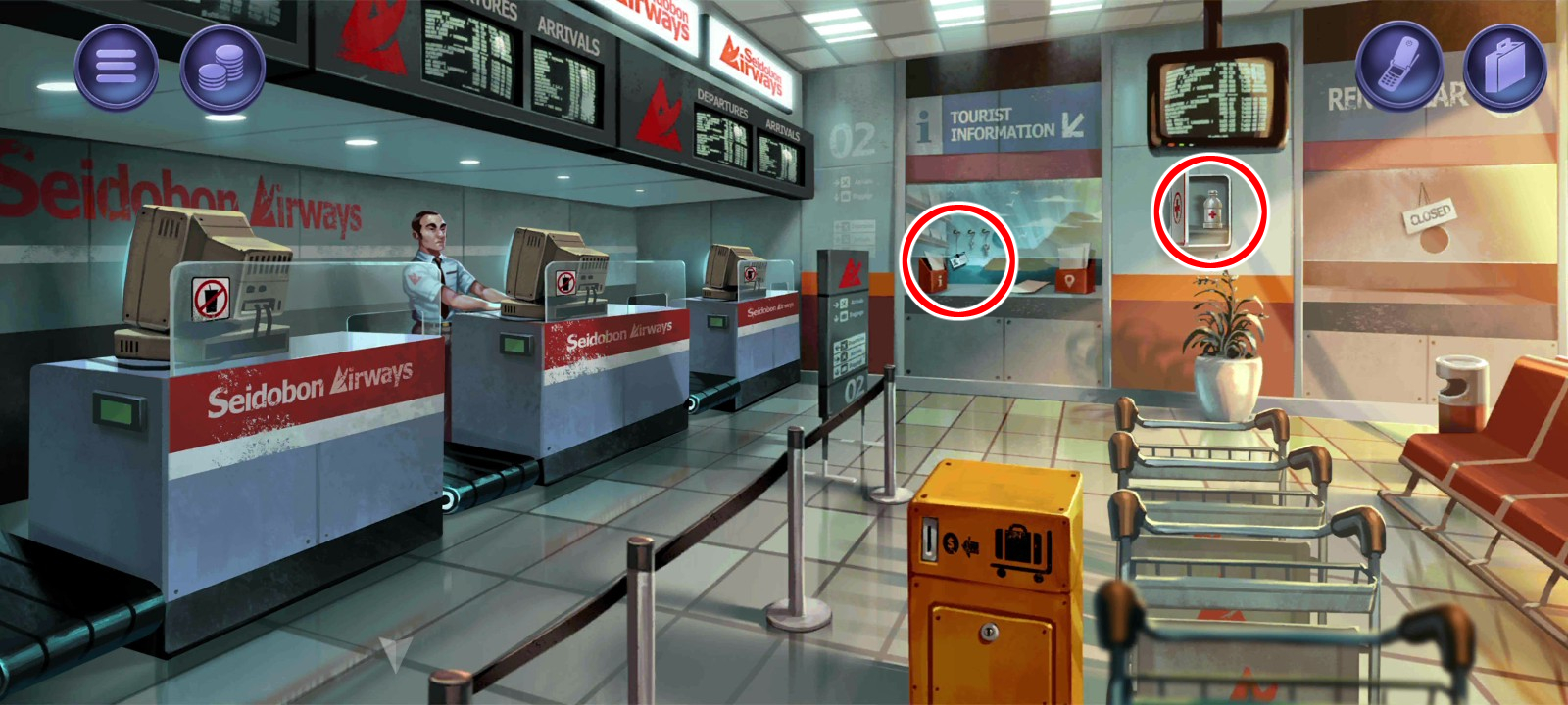 - 수하물 옆 직원에게 탑승권을 제시해 빨간 가방 획득