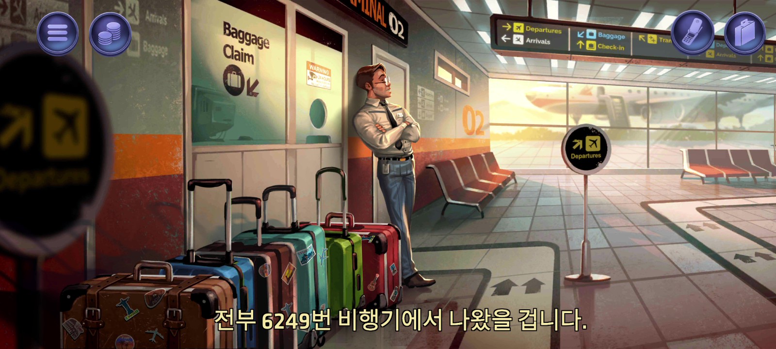 - 분실된 수하물 옆 직원과 대화하면 해당 수하물의 비행기가 6249번 비행기 것임을 알 수 있다