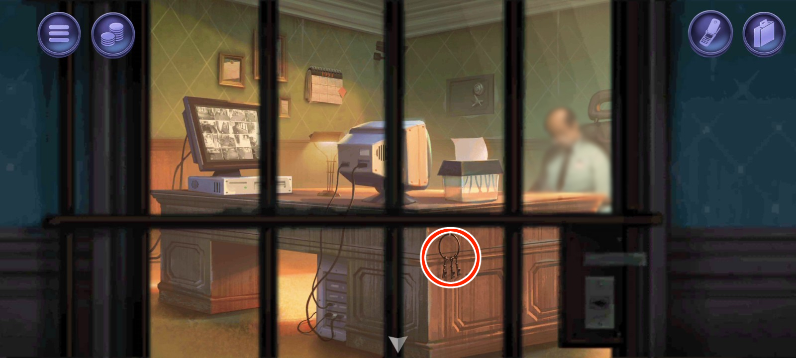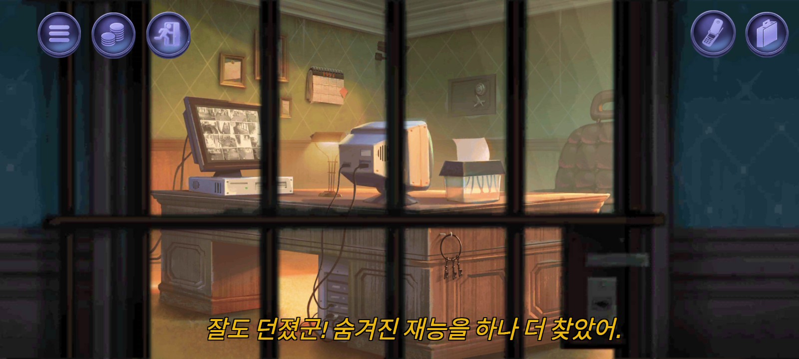 - 창살 넘어 보이는 열쇠걸이에 열쇠(금) 사용