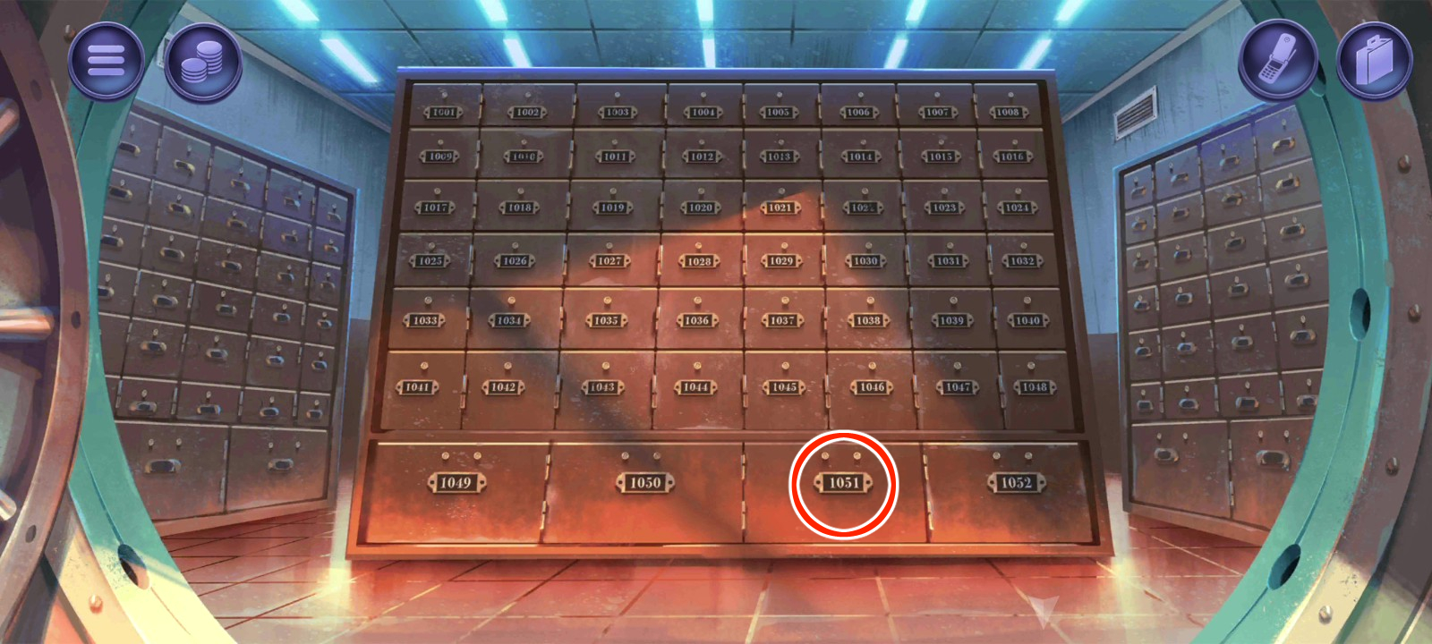 - 대형금고 안 1051번 대여금고에 열쇠(은) 사용