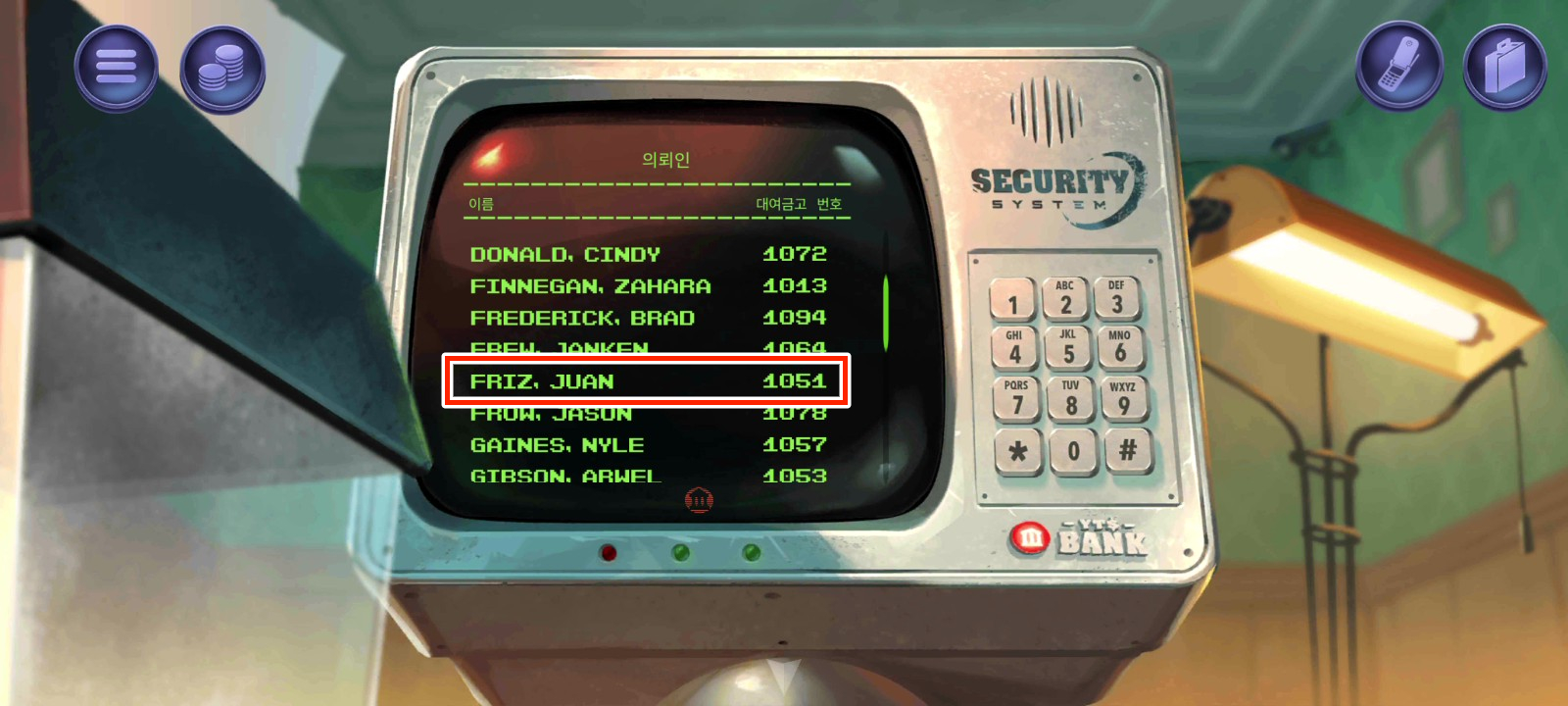 비밀번호는 4자리이므로 Juan 혹은 Friz의 스펠링이 적힌 숫자패드를 누른다