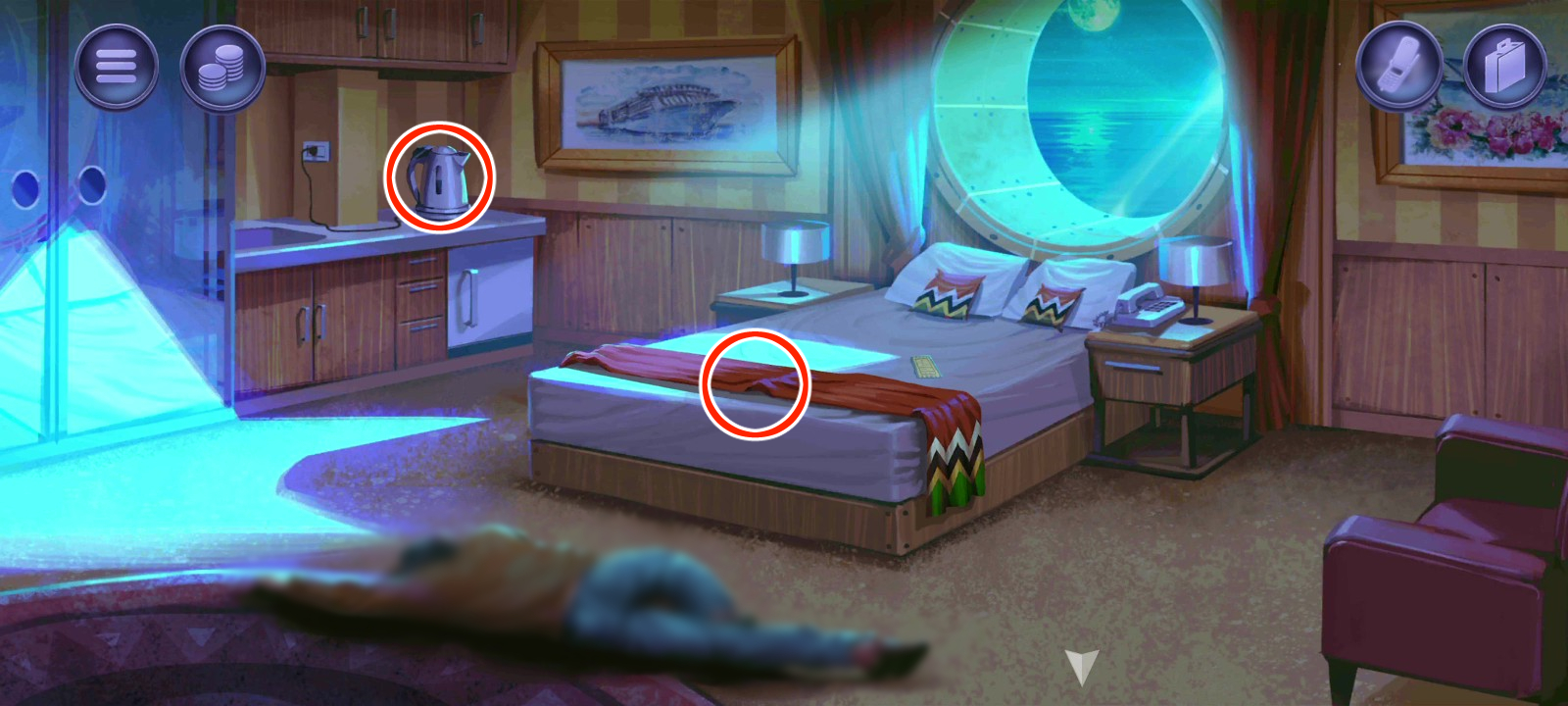 - 호화객실로 올라가 담요를 회수하고 침대위에 호화객실 키카드를 놓는다