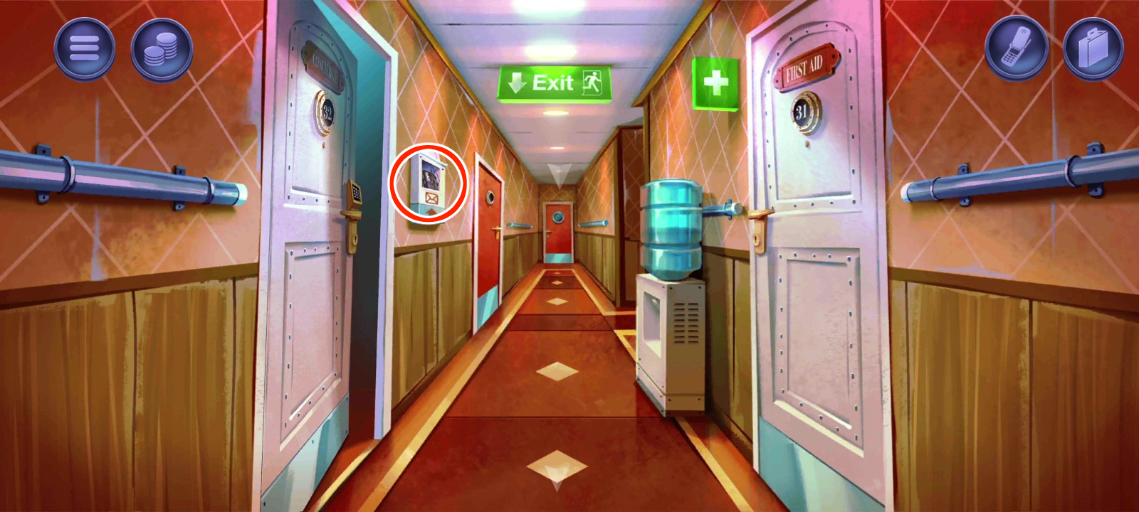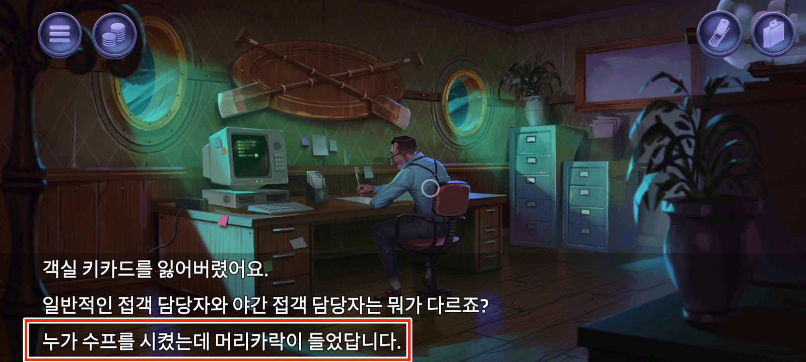 - 호화객실 복도로 이동해 21호실에 호화객실 키카드 사용