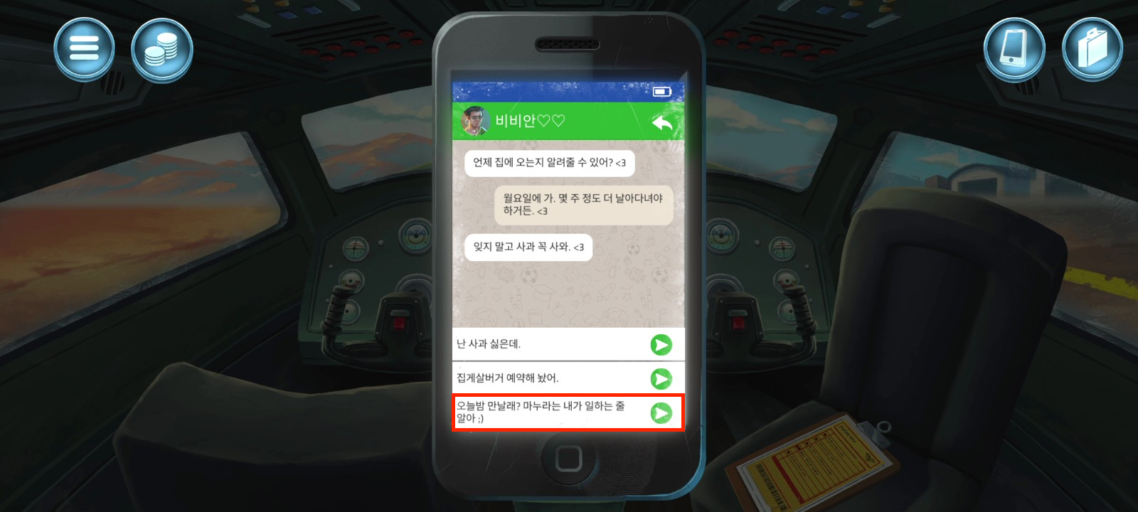 - 비비안(아내)의 대화를 눌러 바람피운 뉘앙스의 메시지를 보낸다