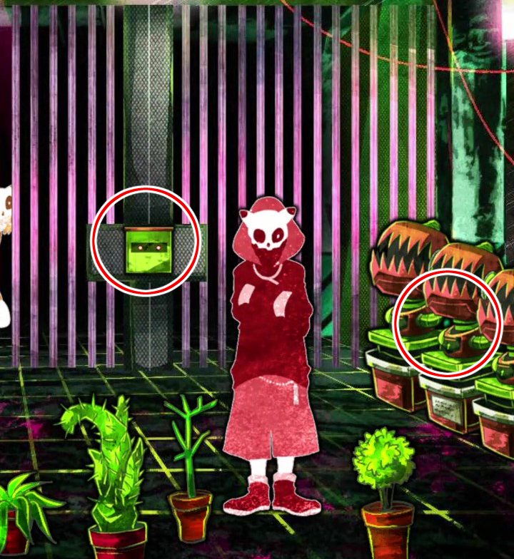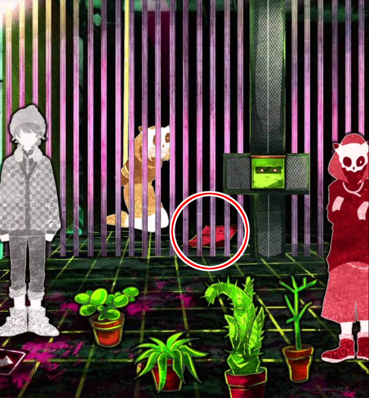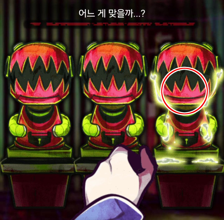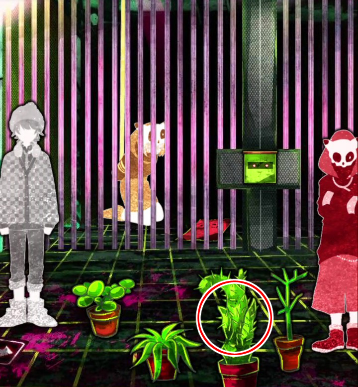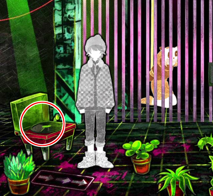 정체모를 감옥 : 레코드판 조사 → 선인장 조사 → 레코드판 조사 → 눈물 흘리는 기계장치 조사 → 키패드 조사