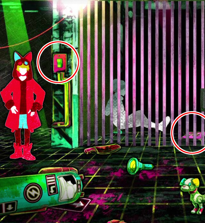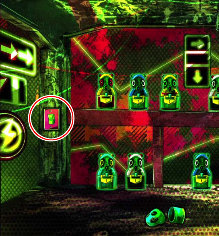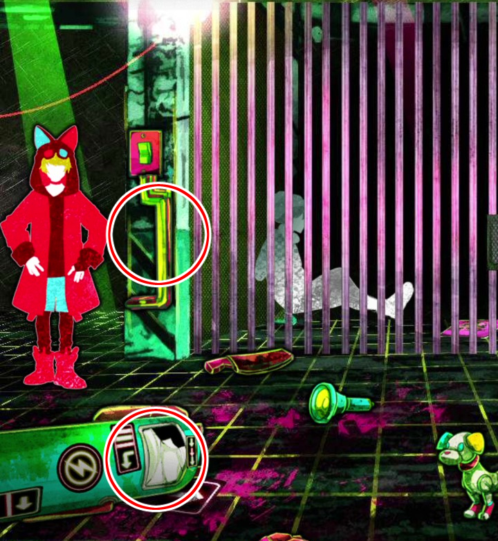 수수께끼의 감옥 : 감옥 안 종이 조사 → 스위치 조사 → 배선 조사 → 관 조사 → 배선 조사 → 바닥의 문 조사