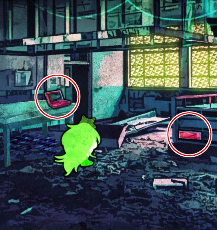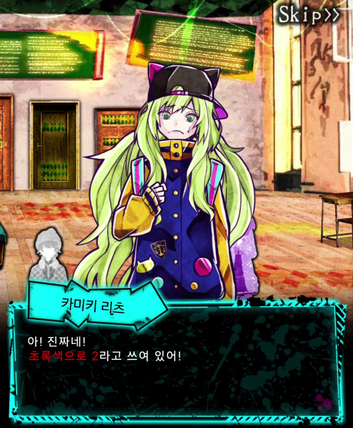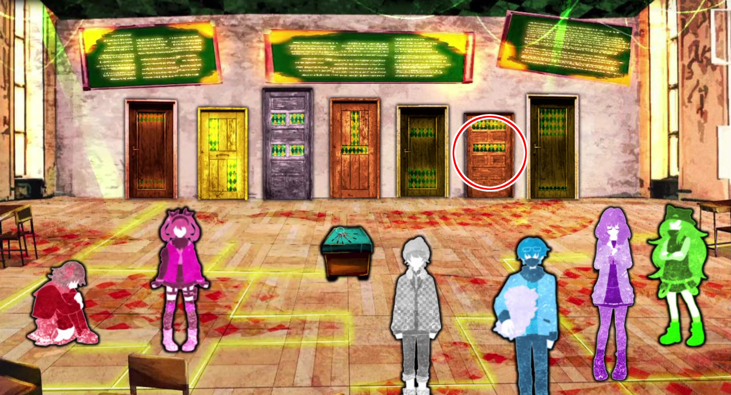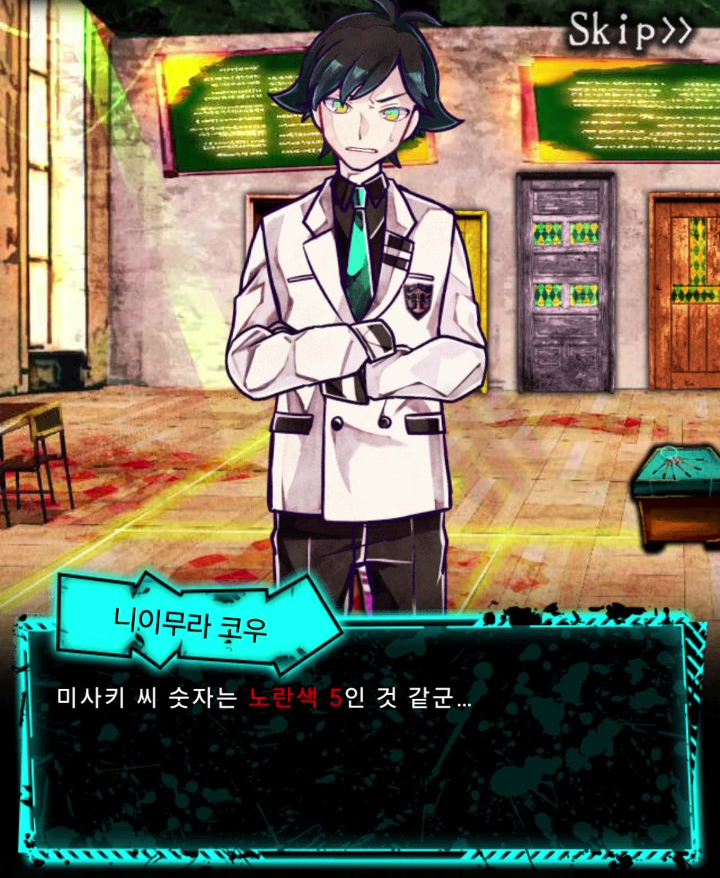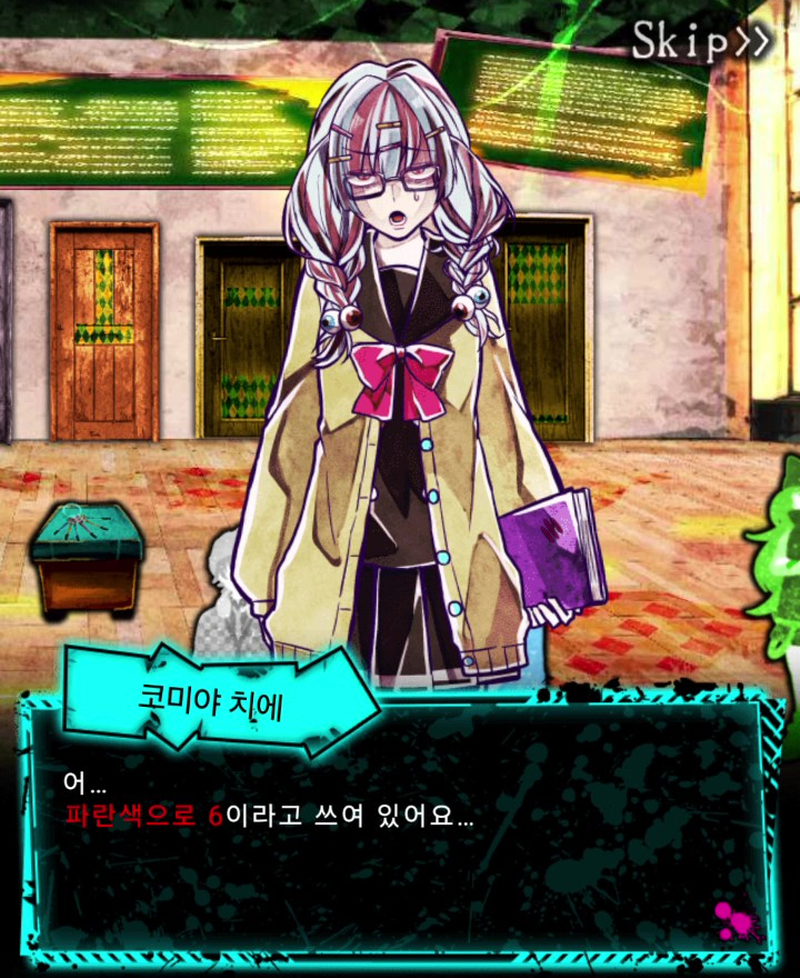 교실 : 오른쪽에서 두번째 문 조사 → 모두와 한 번씩 대화해 힌트를 얻는다 → 오른쪽에서 두번째 문 조사