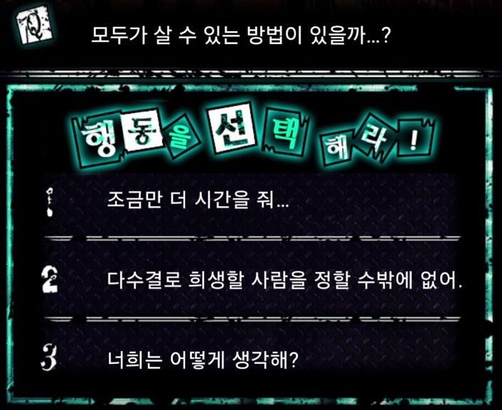 너희는 어떻게 생각해? ▶ 질문 반복다수결로 희생할 사람을 정할 수 밖에 없어 ▶ 질문 반복