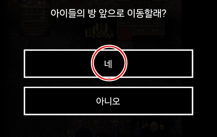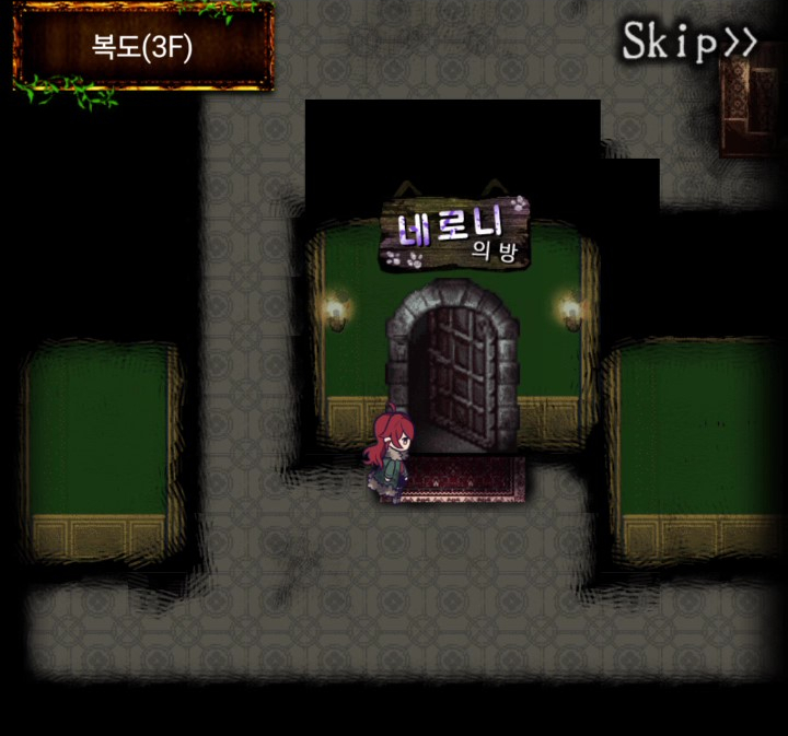 도주 : 3층 복도 → 리사의 방 진입 → 침대 옆 값옷에 숨는다