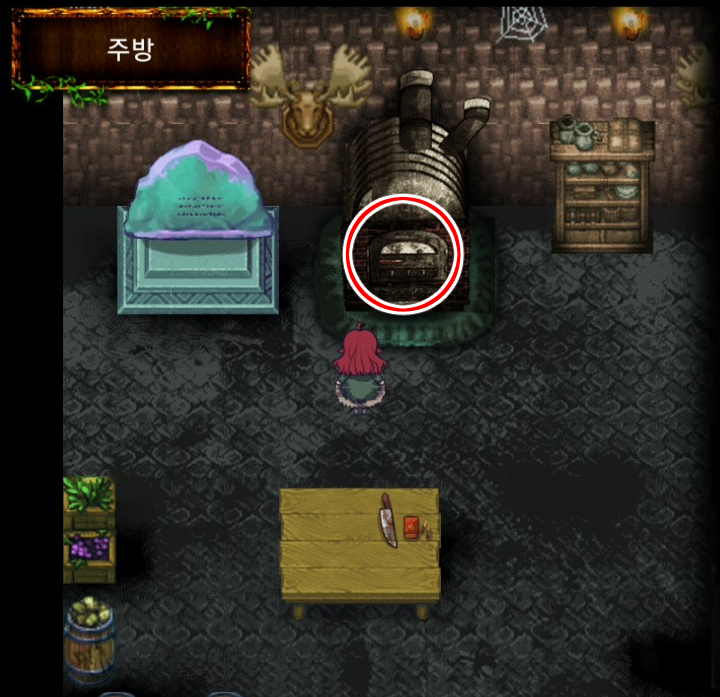 추적 : 1층으로 이동 → 가운데 위쪽에서 인형 확인 → 거실주방 진입 → 거실에서 인형 확인 → 주방 진입 → 화덕 조사
