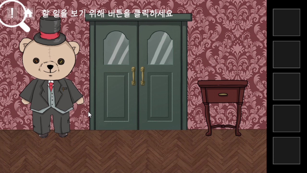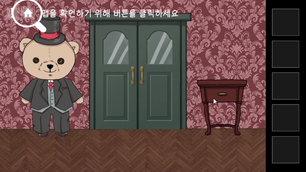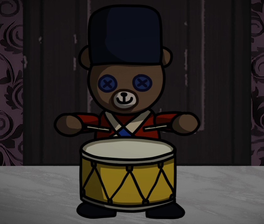 - 책상위 편지 힌트에 맞춰 곰돌이가 북을 치게한다