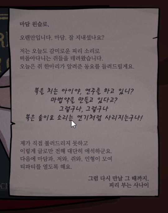 - 장식장에 가 마담 윈슬로와 대화