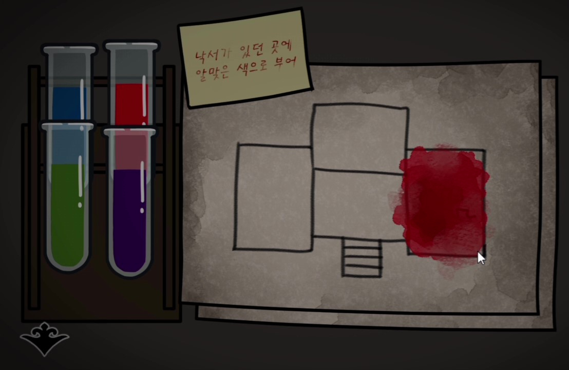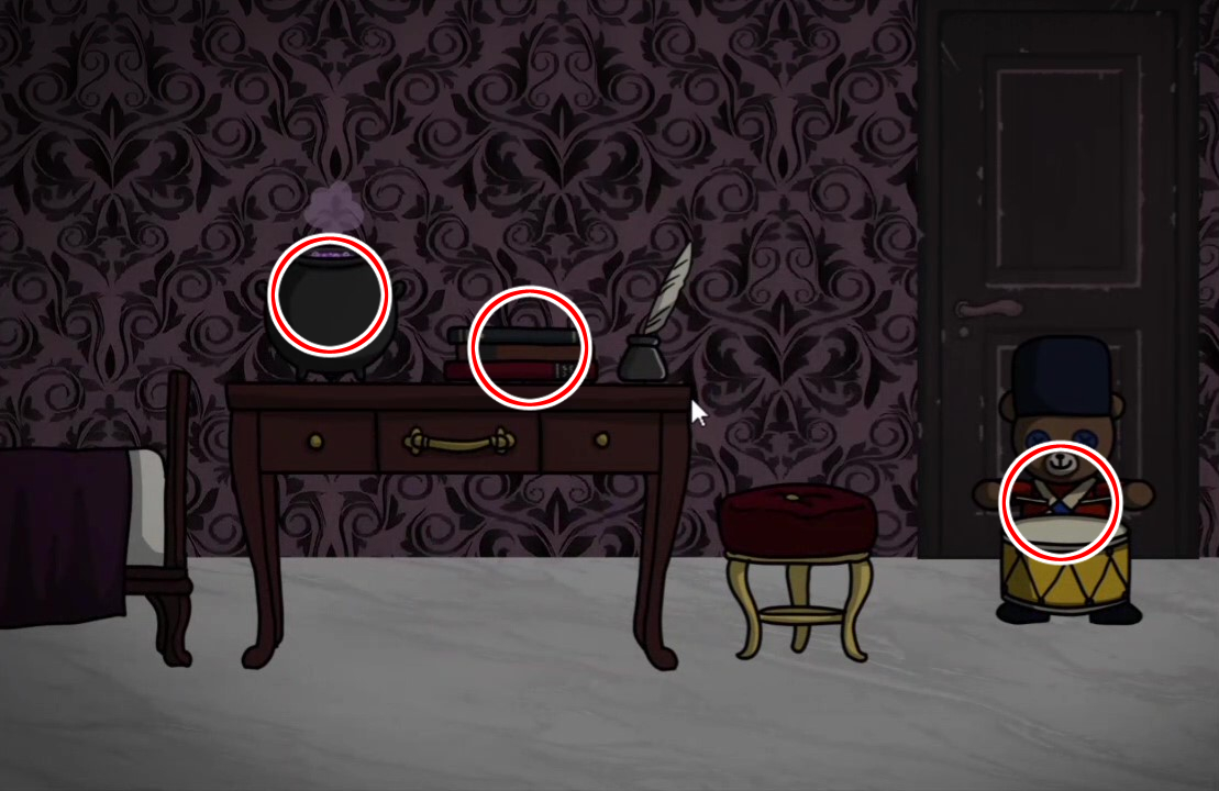 - 로비에 2개, 길버트의 방, 그레텔의 방, 윈슬로의 방에 크레파스를 사용해 숨긴다