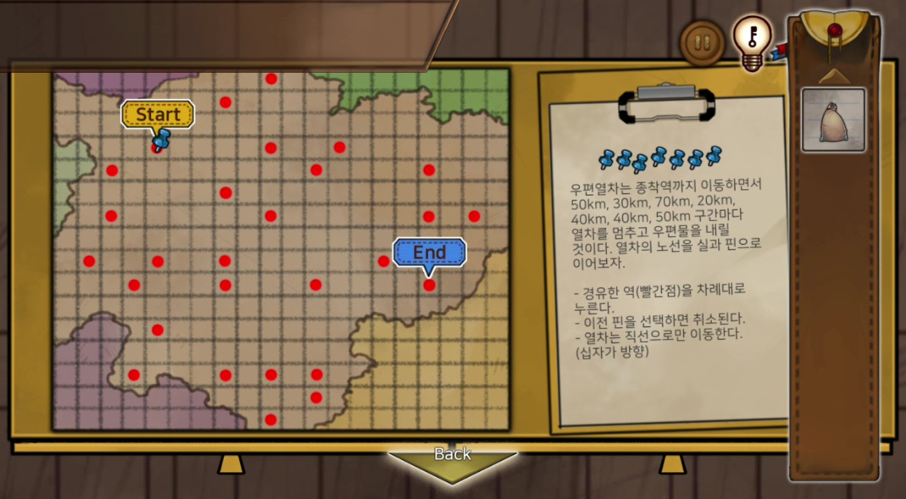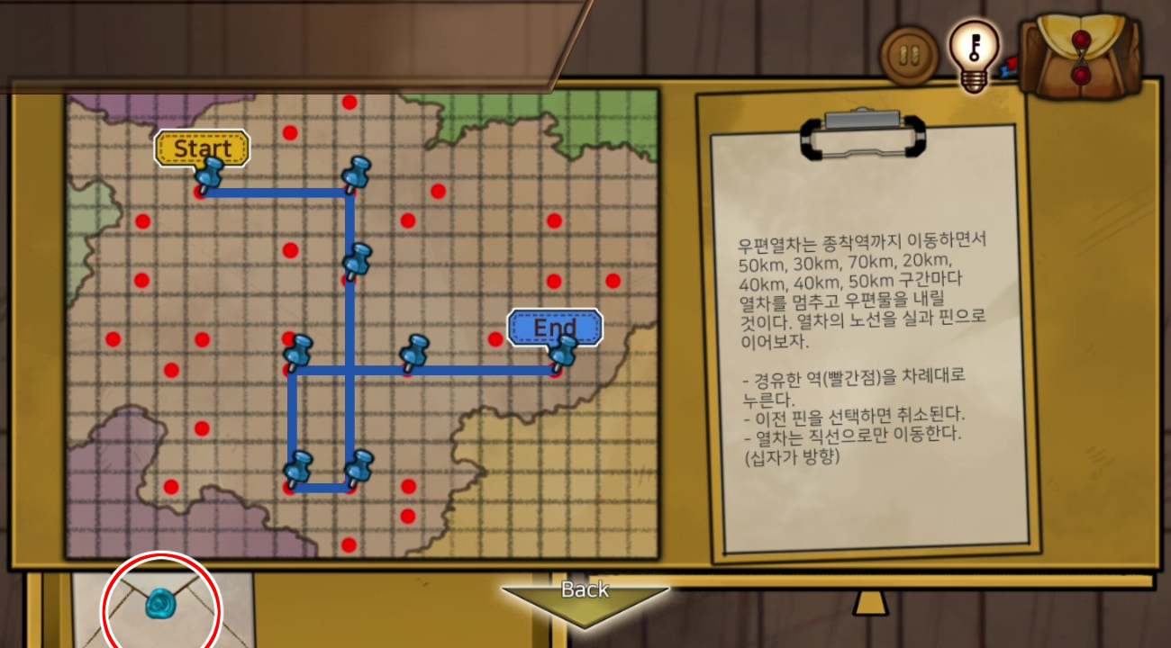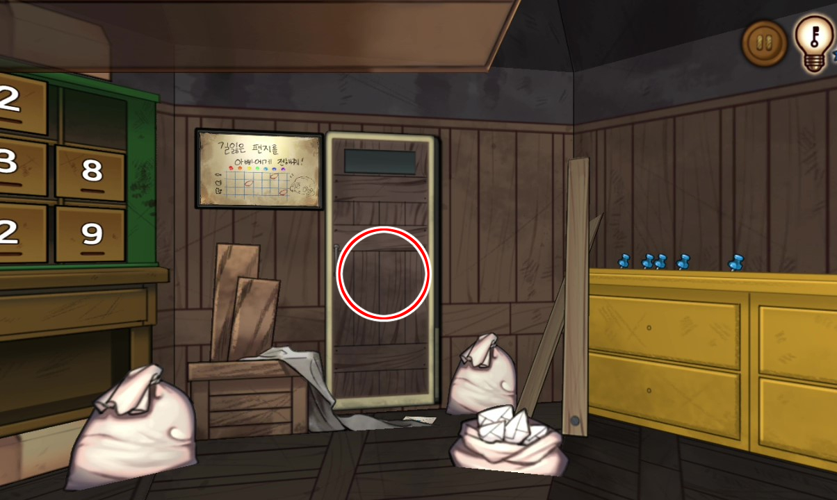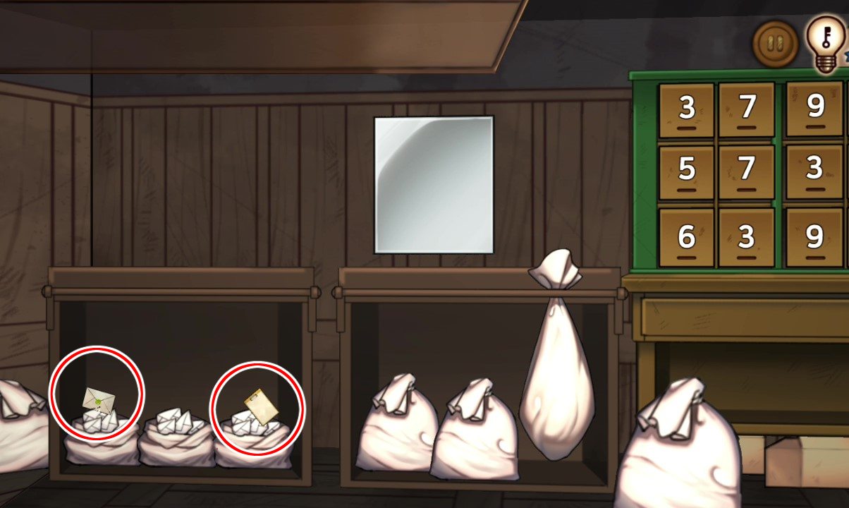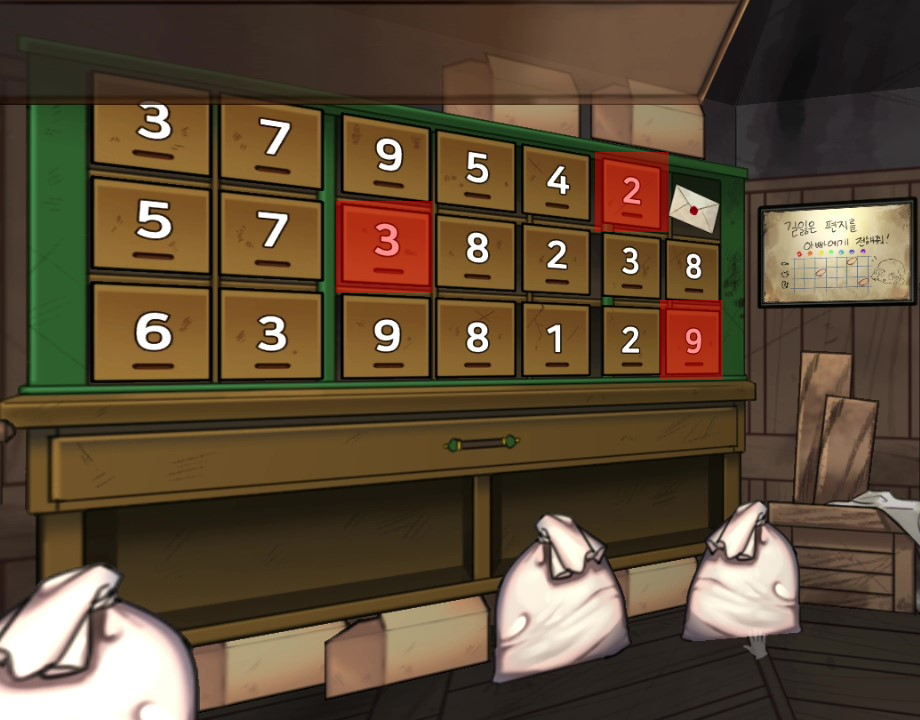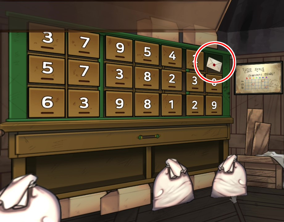 - 우편 포대 안, 서랍 위, 우편선반의 그림조각 3개 획득