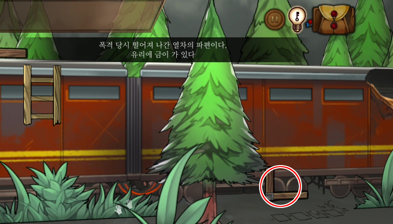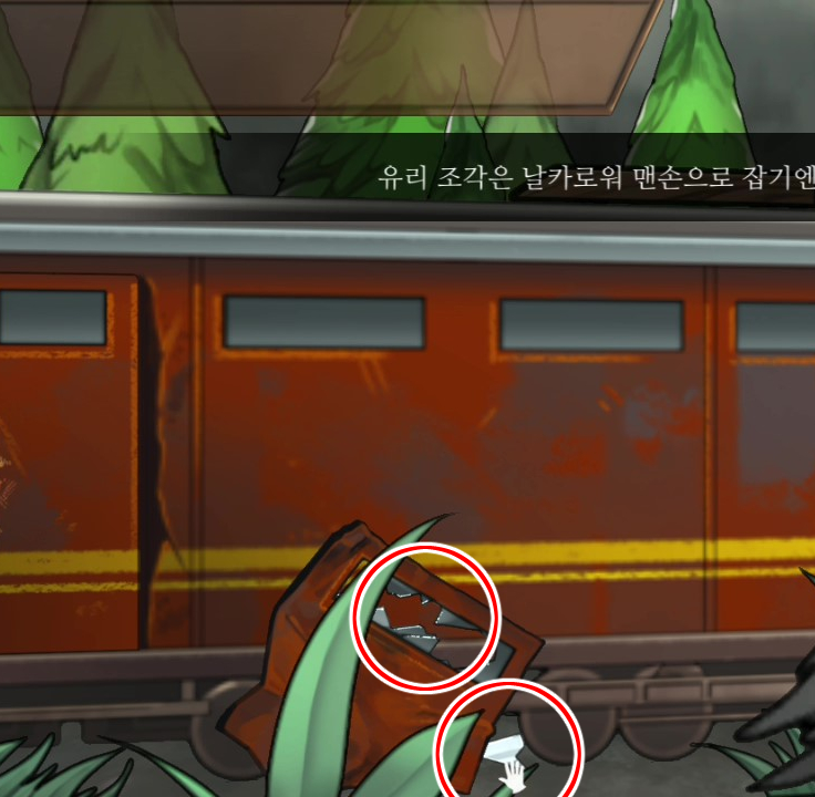 - 열차의 떨어진 문 유리창에 돌맹이를 사용