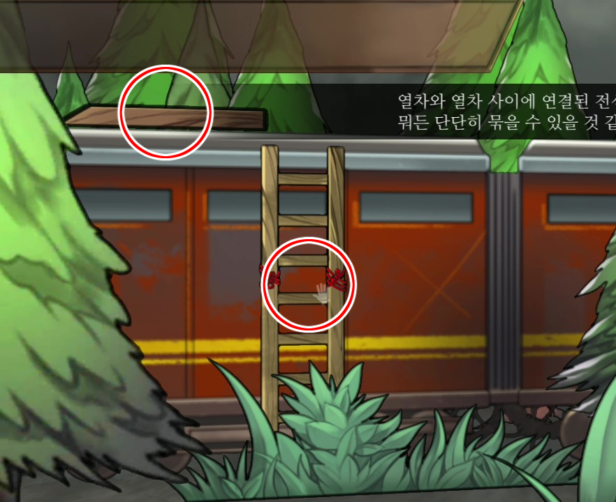- 열차 옆면의 사다리에 사다리 조각 사용