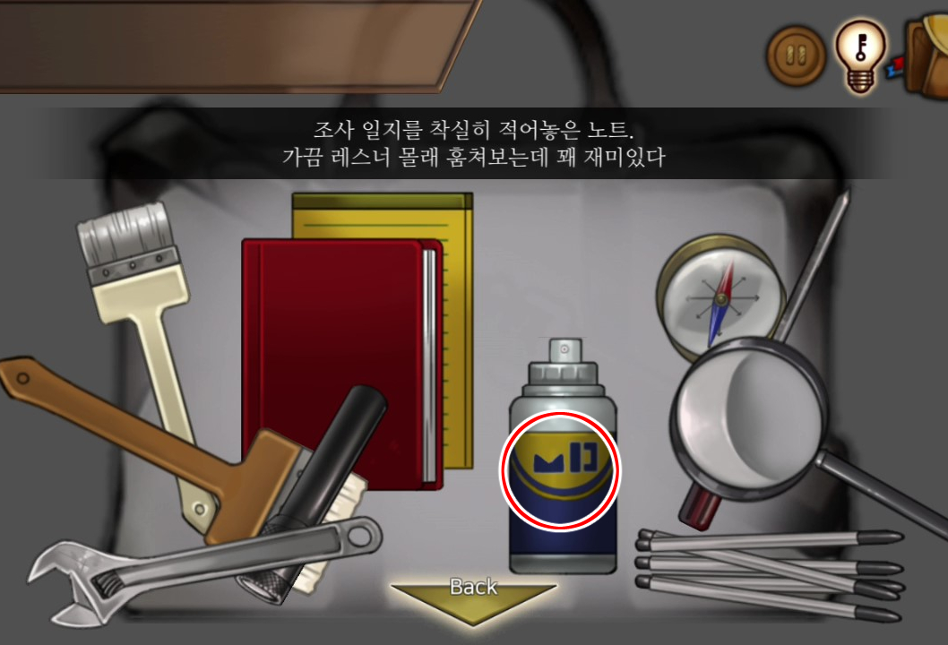 - 다시 흰 가방에서 녹제거 스프레이를 획득