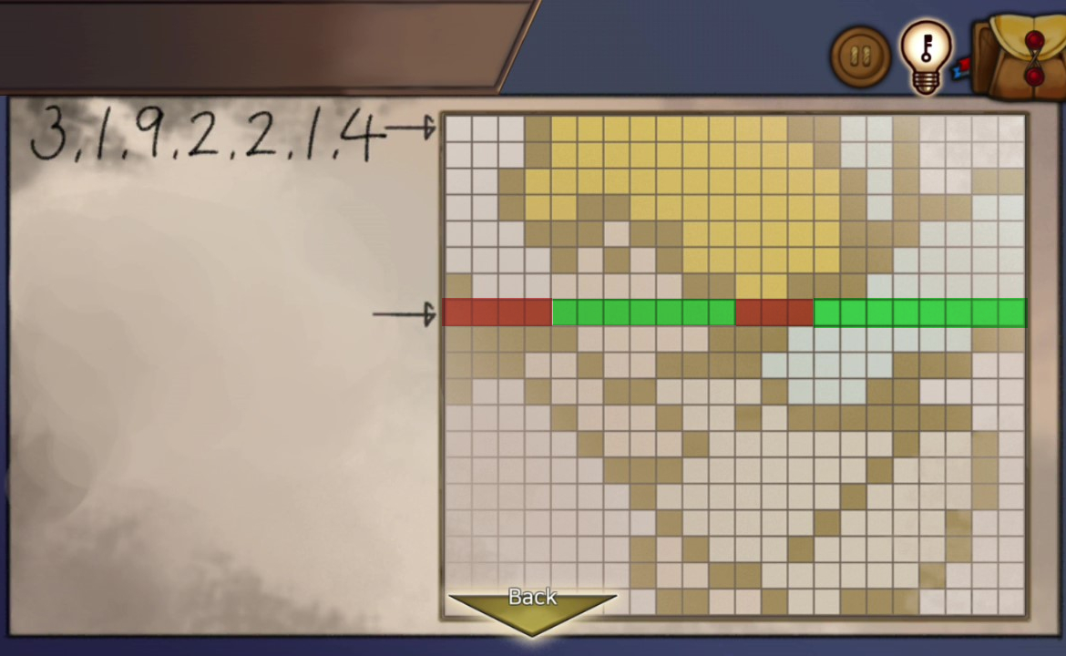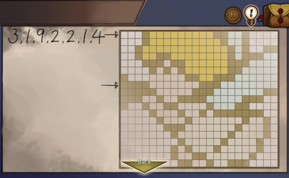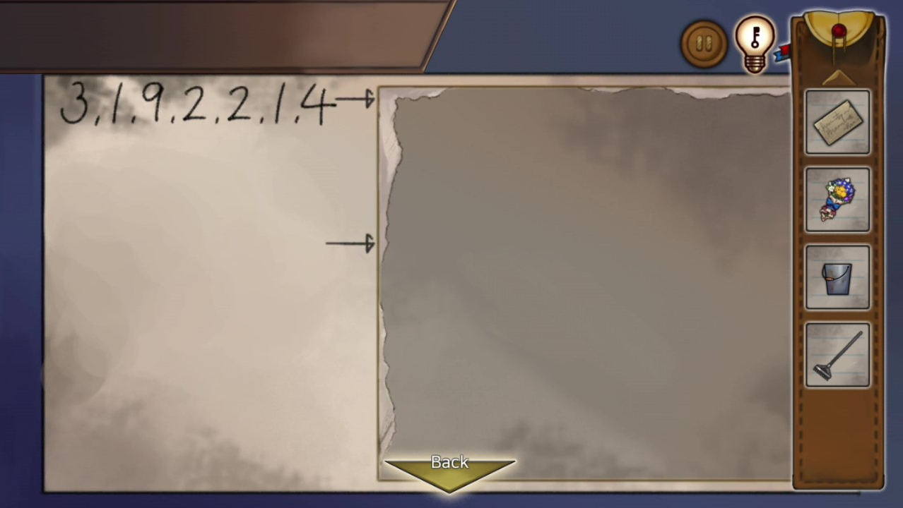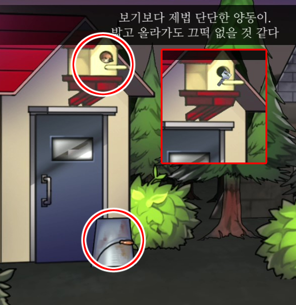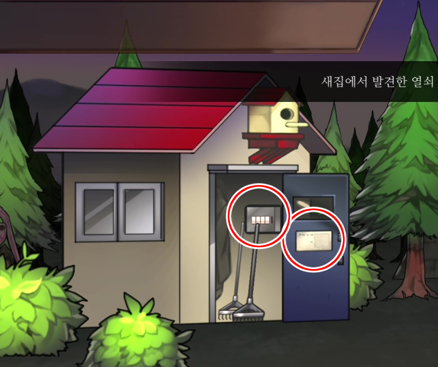 - 창고 문을 확대해 종이조각 사용, 이 힌트로 보관함을 연다 → 회색열쇠 획득