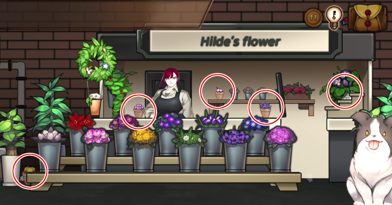 - 꽃가게에 흩어져있는 갈색 화분 4개를 획득