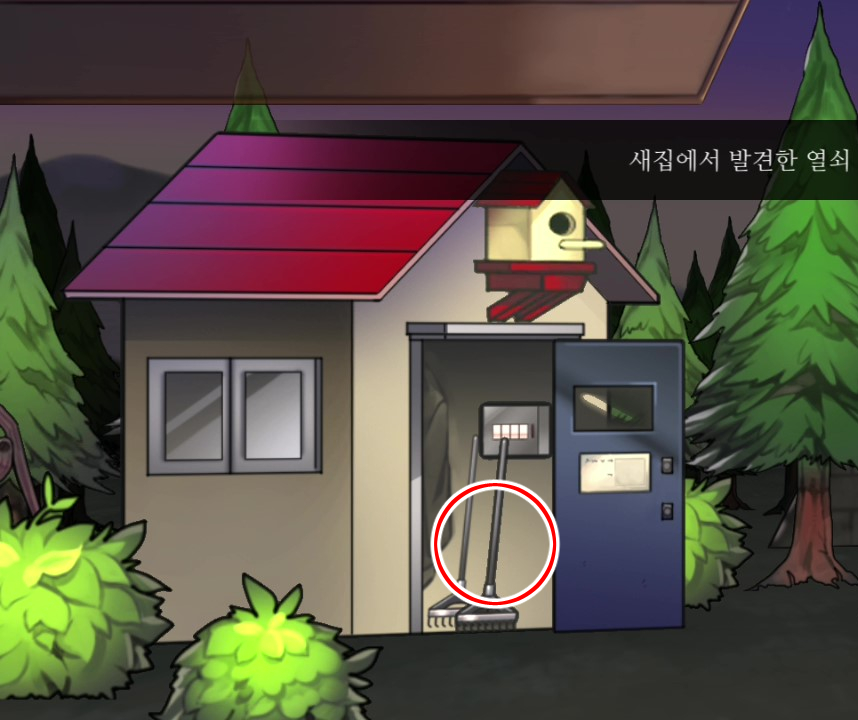 - 빛나는 열쇠를 사용해 새집 밑의 문을 연 뒤 빗자루 획득