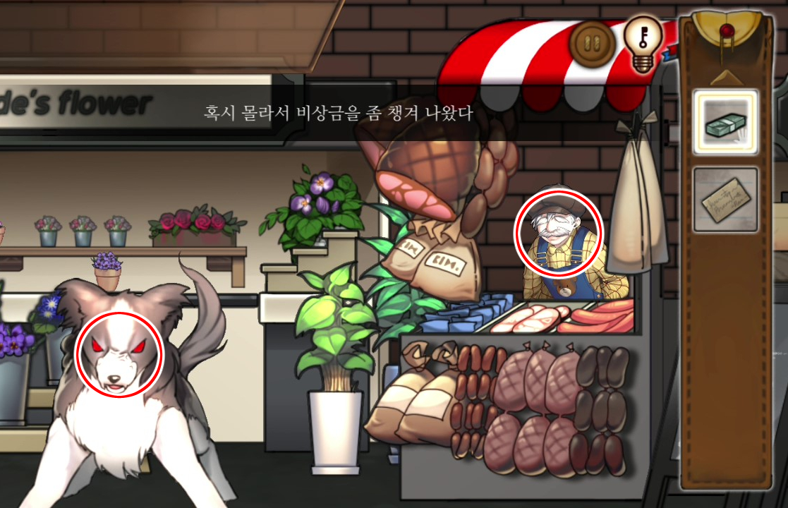 - 꽃가게 주인 뒤쪽 문을 이용해 이동