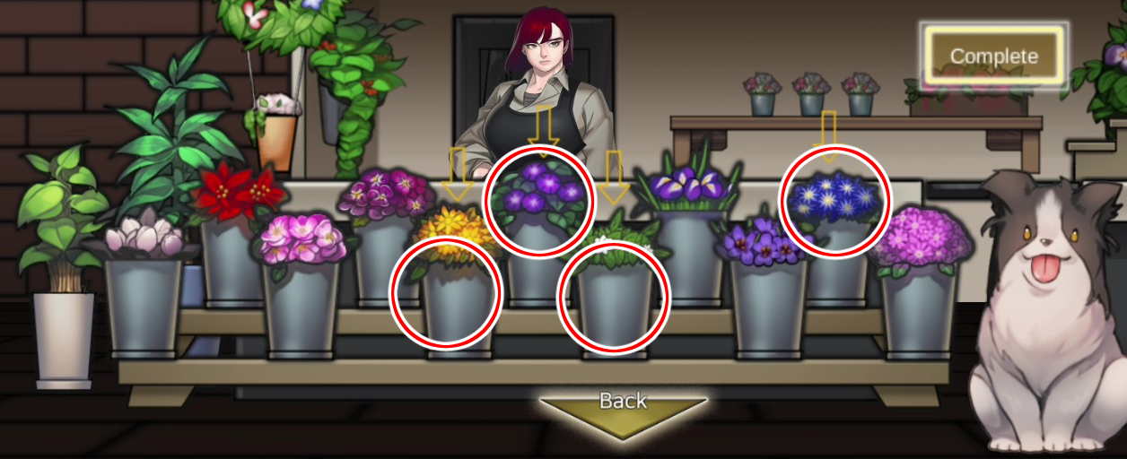 - 편지에 맞춰 꽃 네가지를 고른다 → 꽃다발 획득