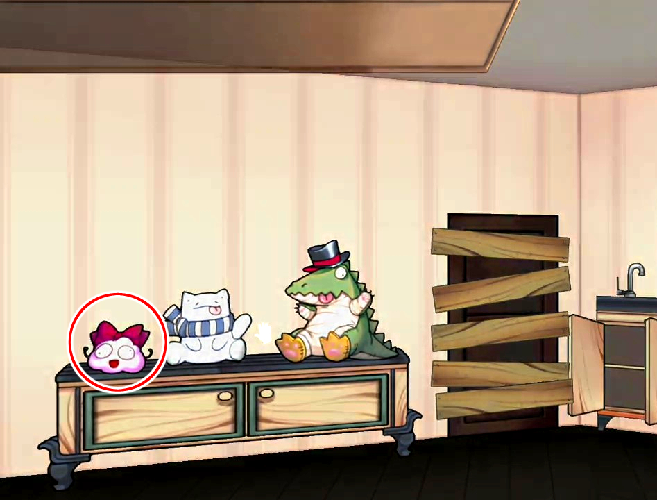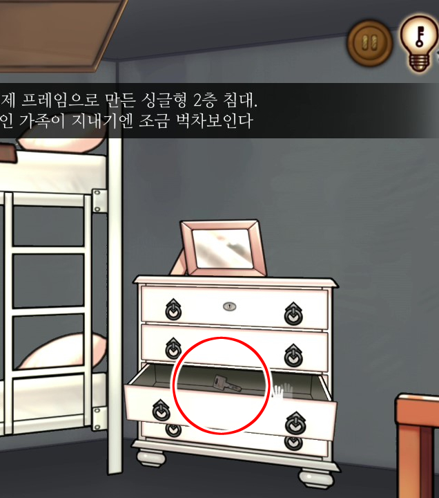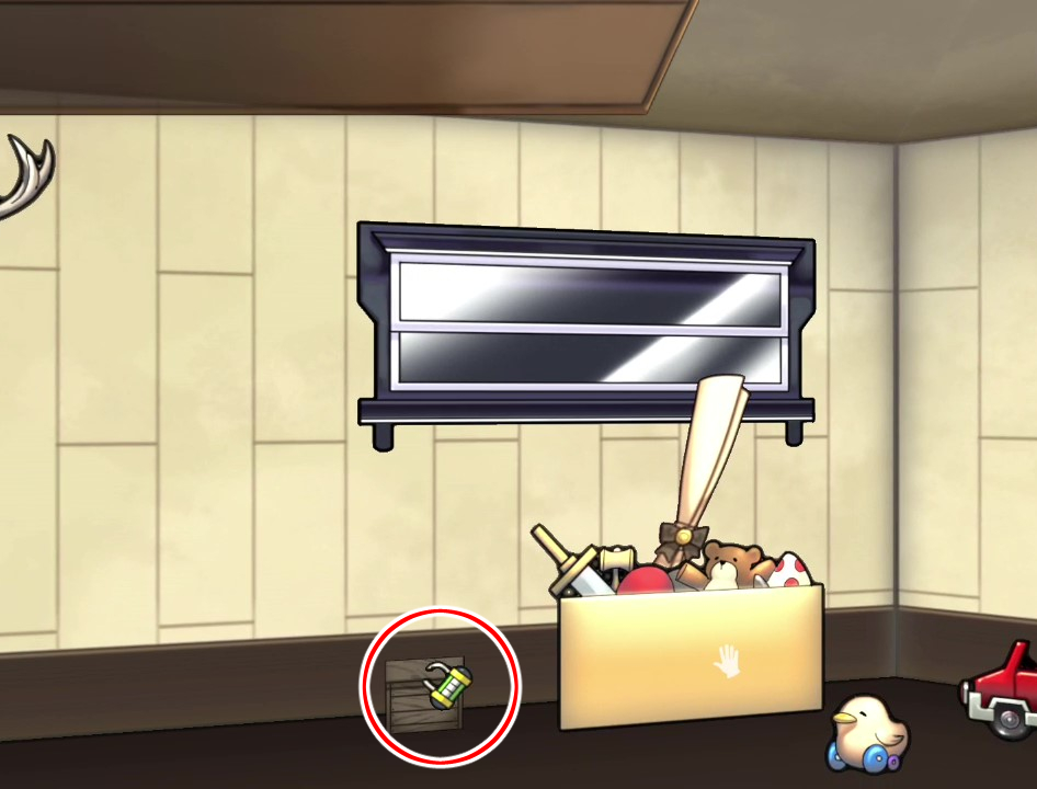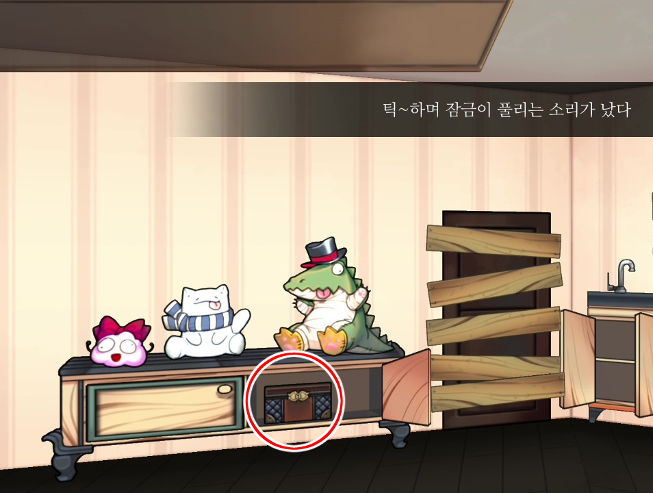 - 인형선반 서랍에서 상자 조사 → 열쇠 획득