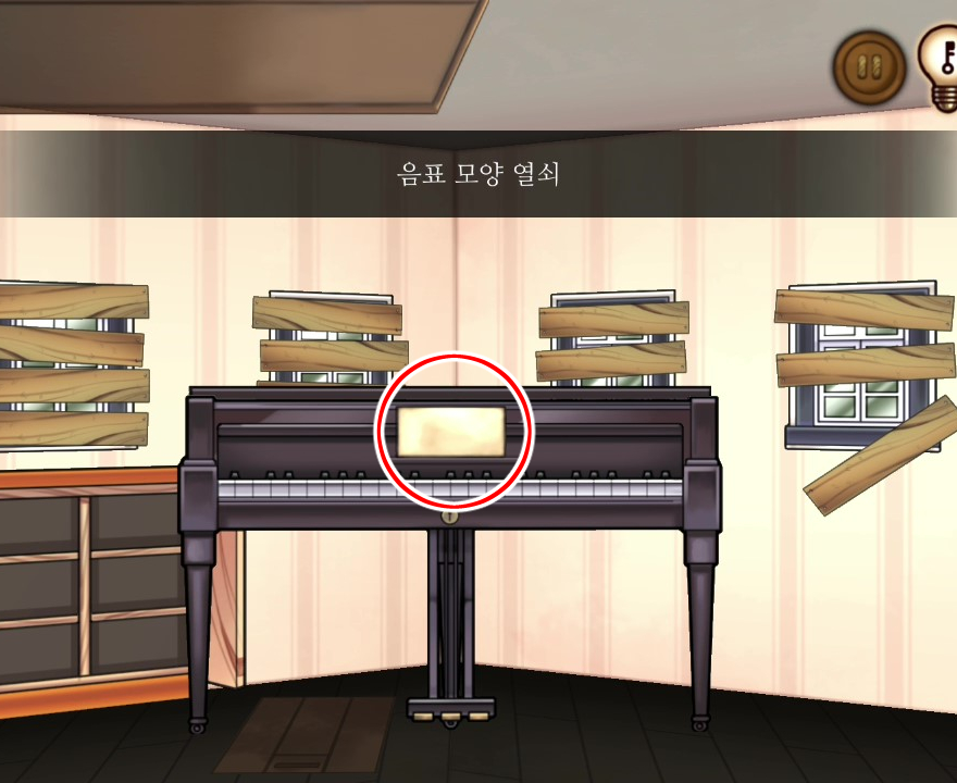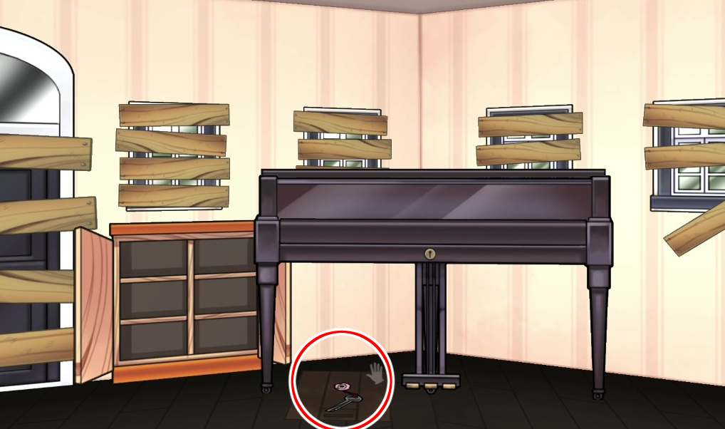 - 피아노 러그 밑에서 열쇠 획득