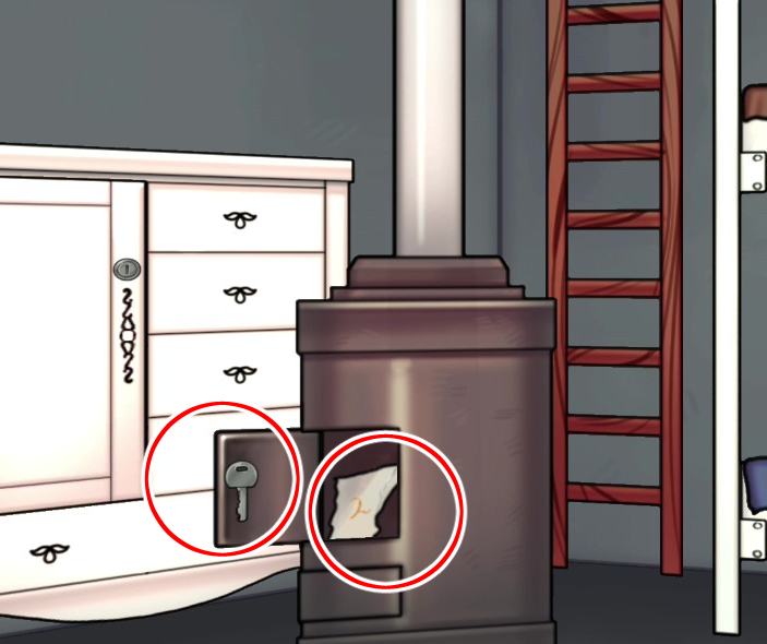 - 난로에서 종이조각, 열쇠 획득