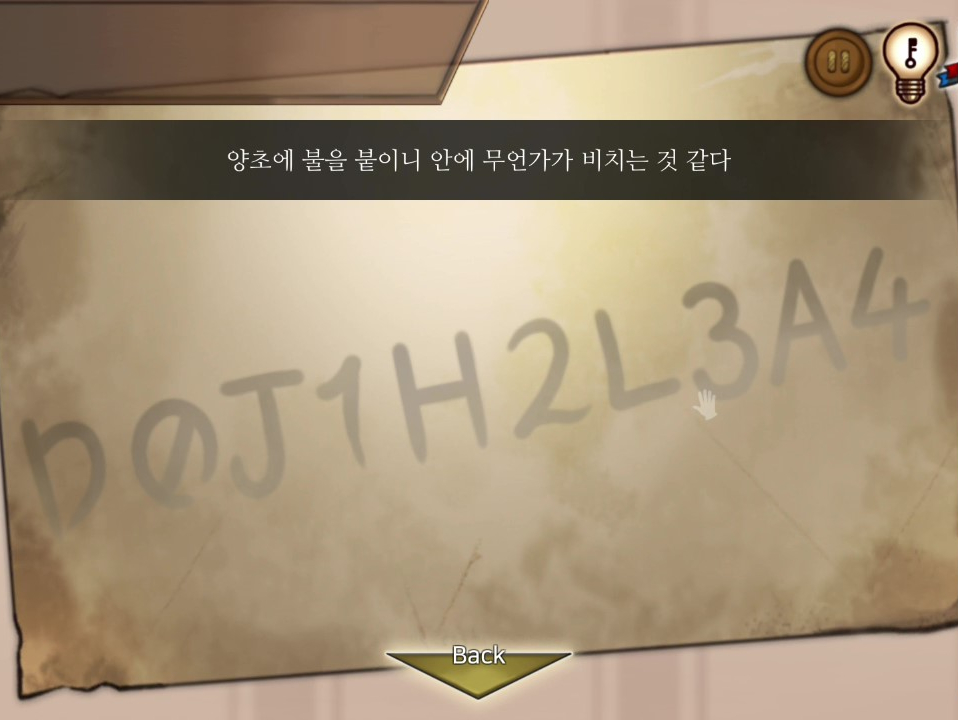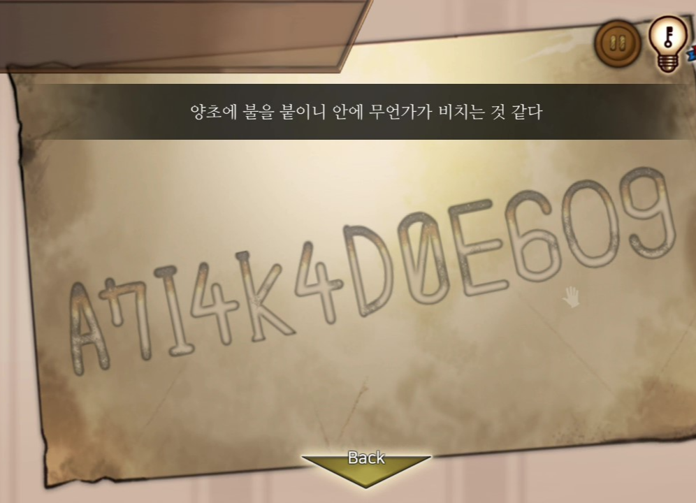 - 서랍에서 성냥 획득, 초에 불을 붙힌 후 메모에 촛불을 사용