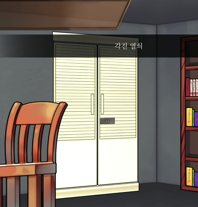 - 가로형 서랍 셋째칸에서 각진열쇠 획득