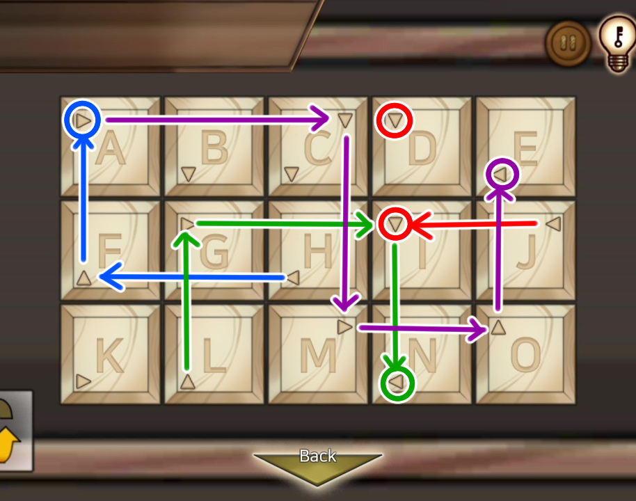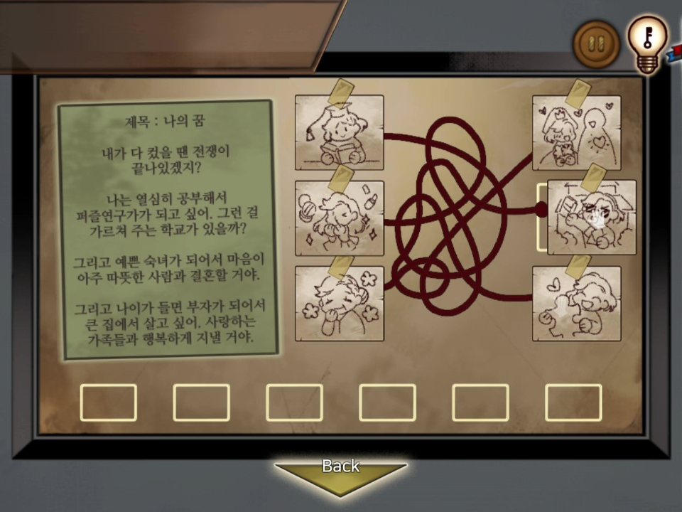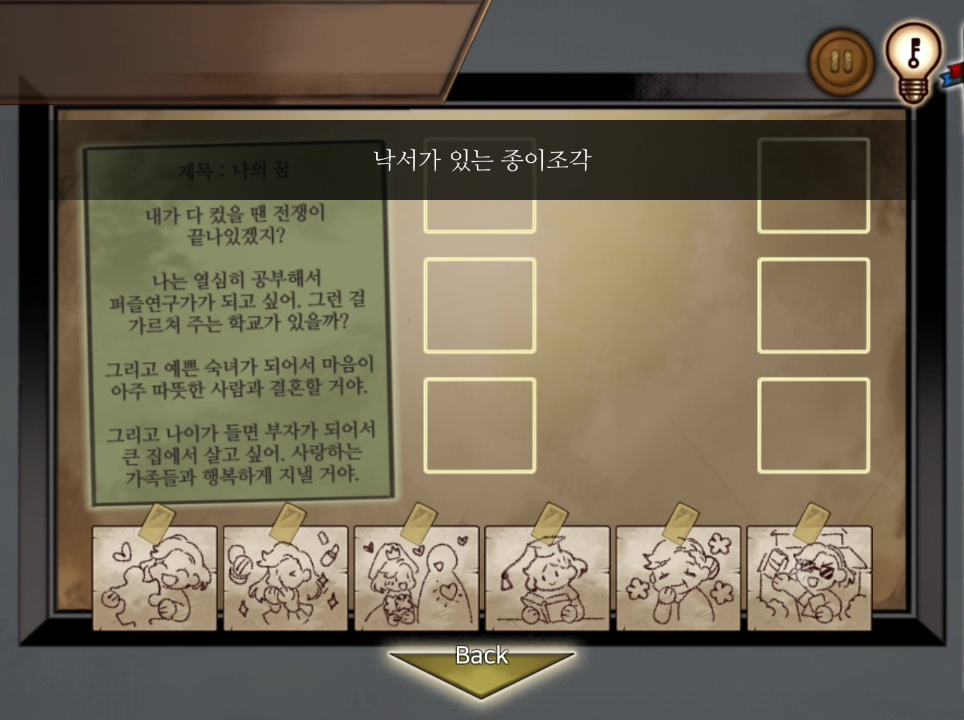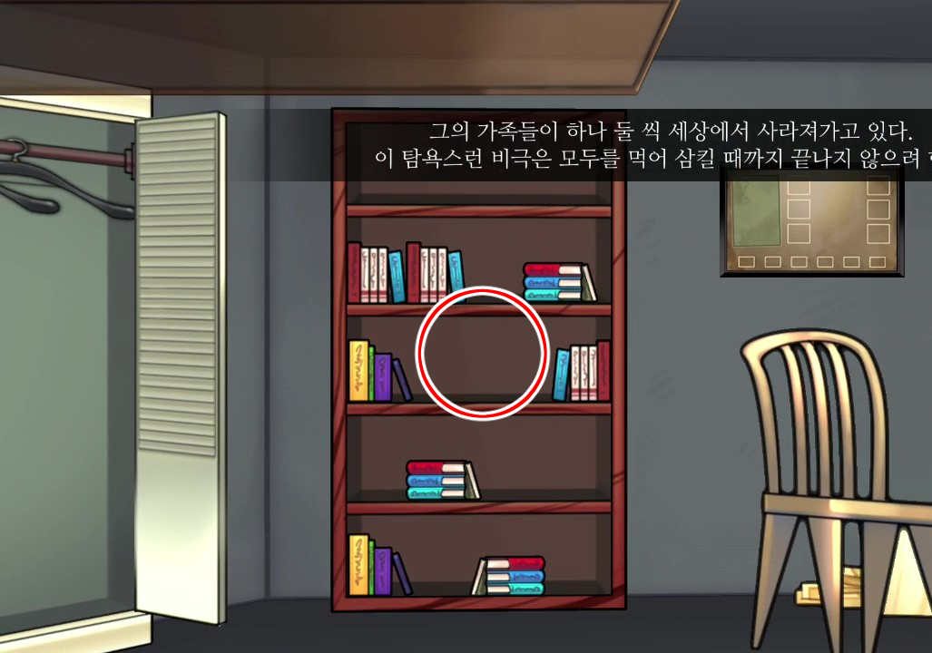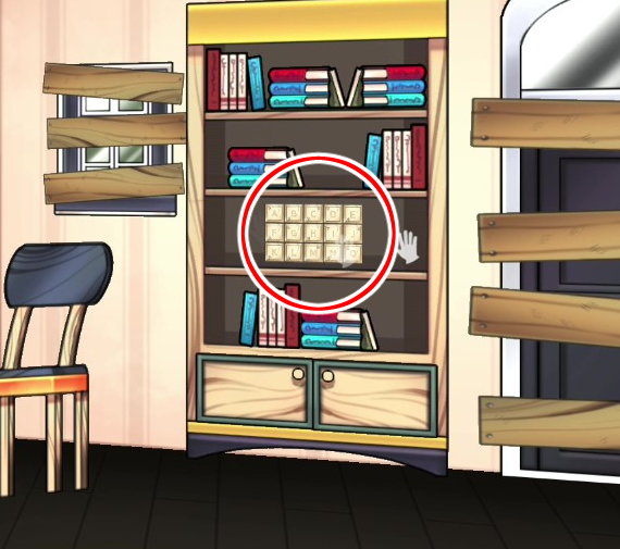 - 책장을 조사하면 책더미가 획득되면서 퍼즐이 나타난다