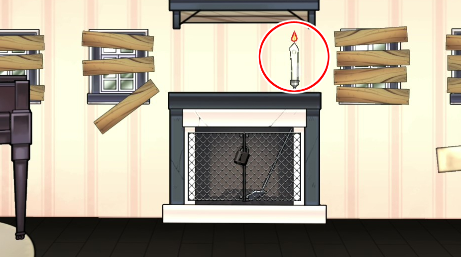 - 성냥을 사용해 난로 위 초에 불을 붙힌다 → 불 붙힌 초 획득
