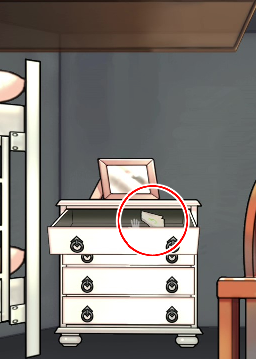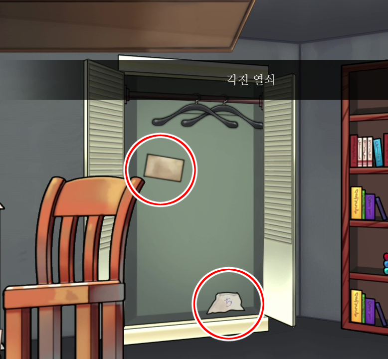 - 벽장의 메모를 토대로 책상서랍의 비밀번호를 푼다 → 종이조각 획득