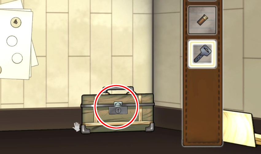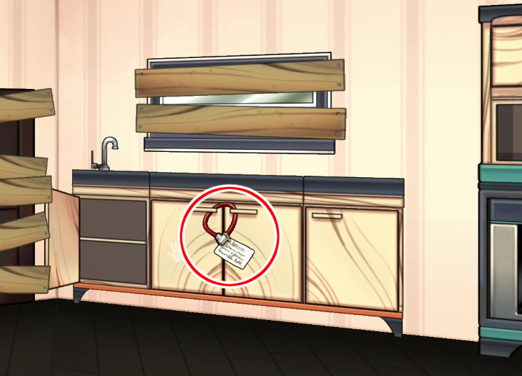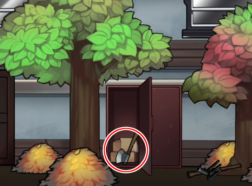 - 벽의 낙서, 우편함 안의 힌트를 이용해 캐비닛의 문을 연다 → 도끼 획득