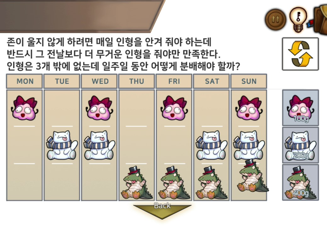 - 책장에서 책더미를 획득하고 메모를 토대로 책장의 문제를 푼다