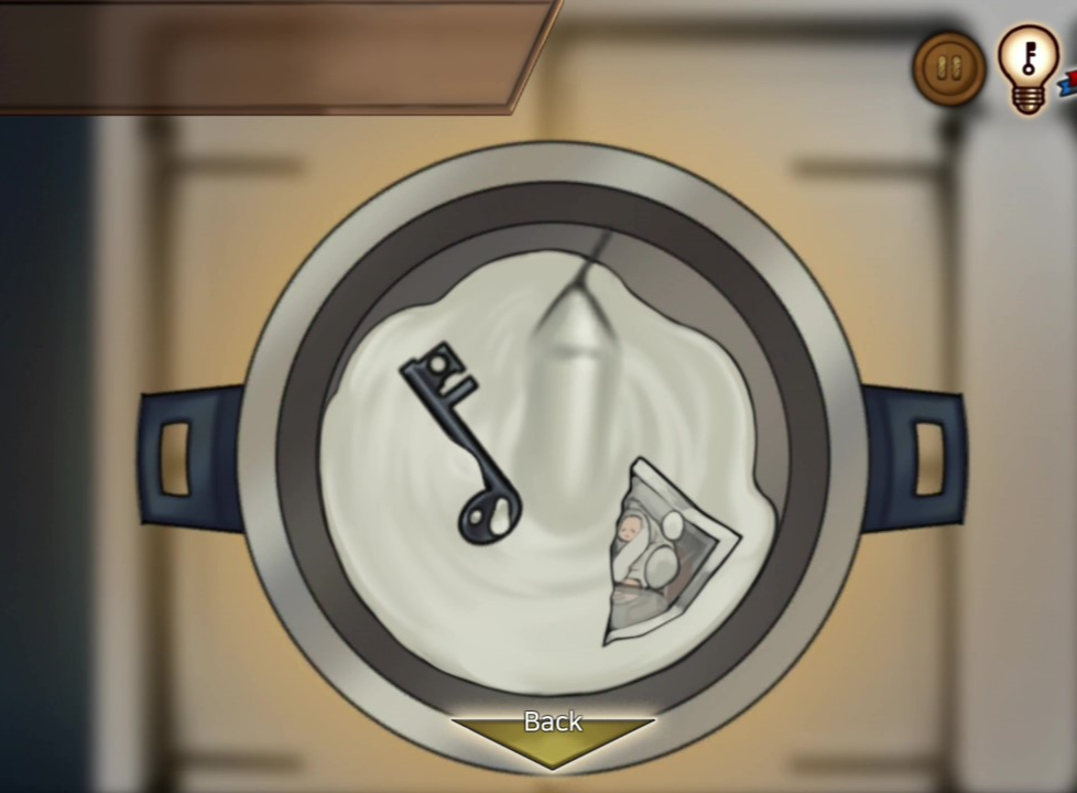 - 냄비를 확대해 초를 넣고 녹인다 → 열쇠 획득
