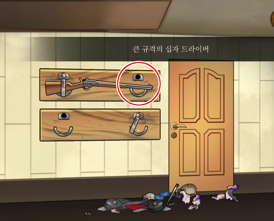 - 남은 벽의 숫자를 장난감상자 옆 자물쇠에 입력 → 탄환 획득