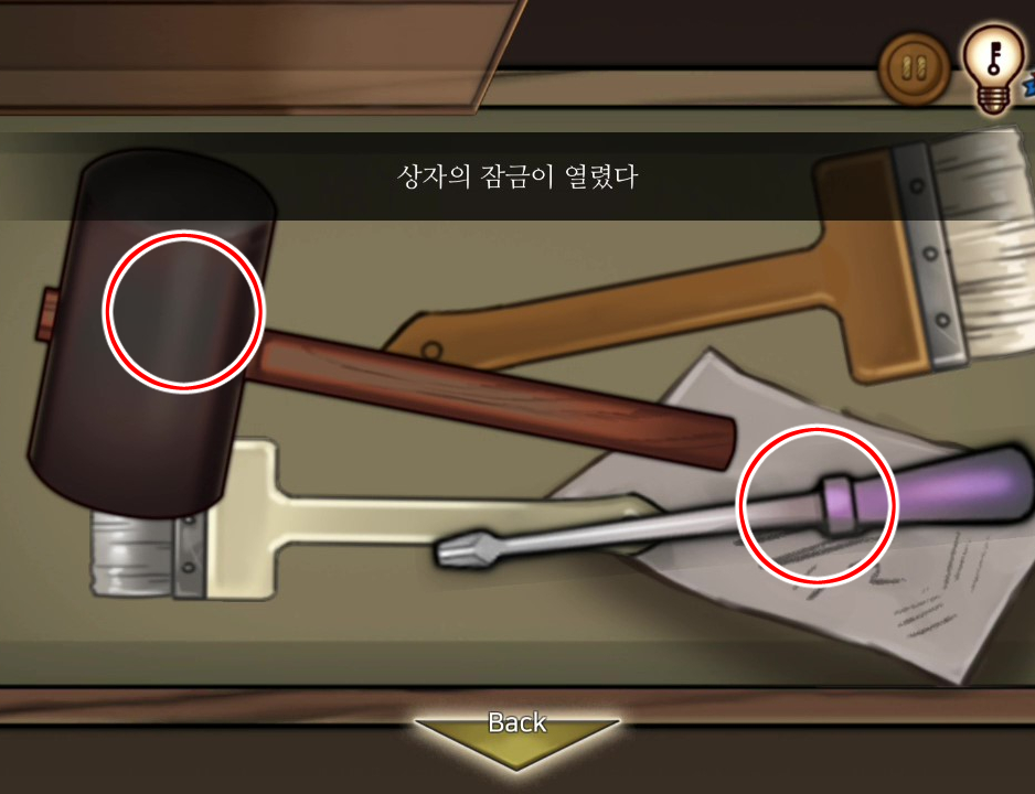 - 회색 열쇠로 상자를 연다 → 드라이버, 고무망치 획득