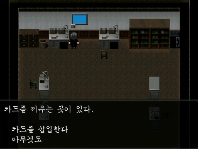 - 1층 사무실에서 장치 조작 후 키카드 세 개를 삽입한다