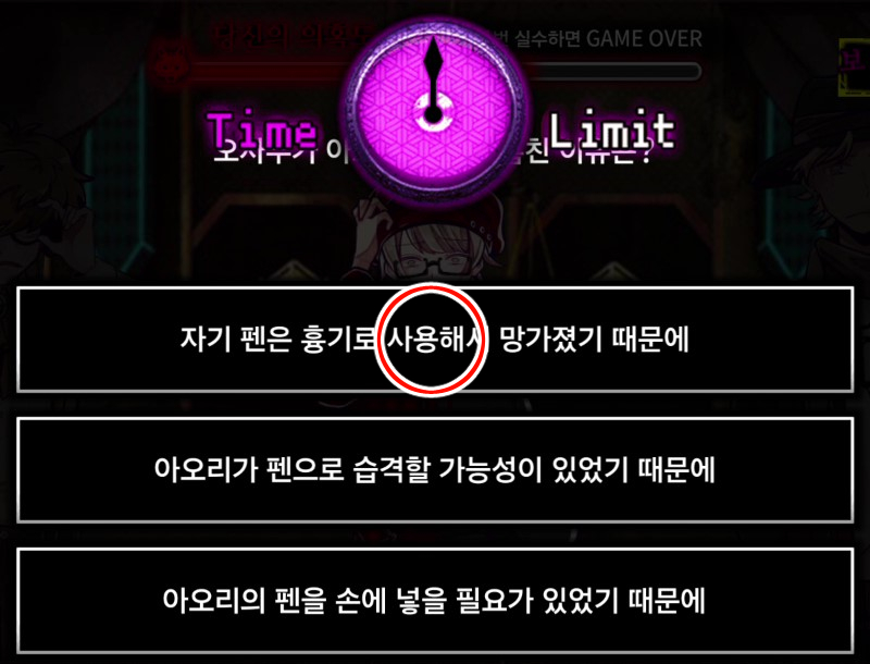- 자기 펜은 흉기로 사용해서 망가졌기 때문