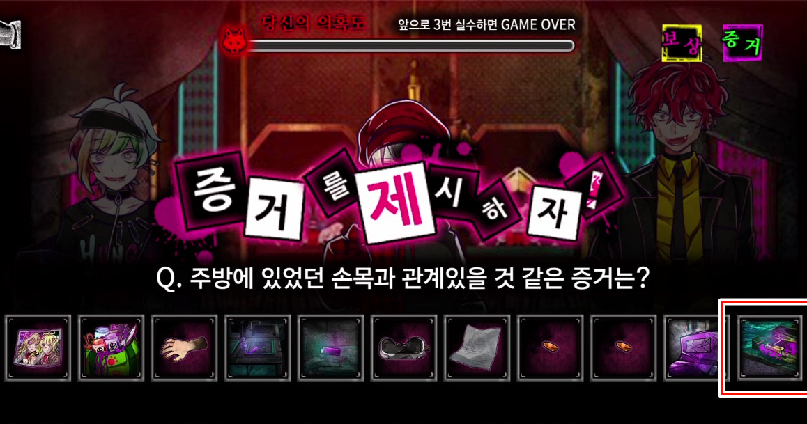 - 1층 주방에서 손 → 가스레인지 → 라이터 순으로 조사