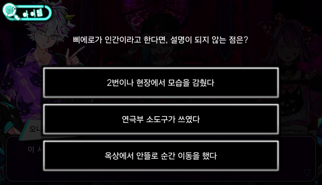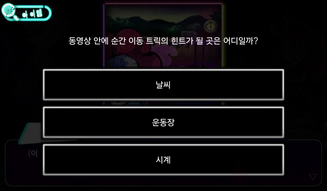 - 보관함 조사 → 포스터를 힌트로 비밀번호를 입력한다