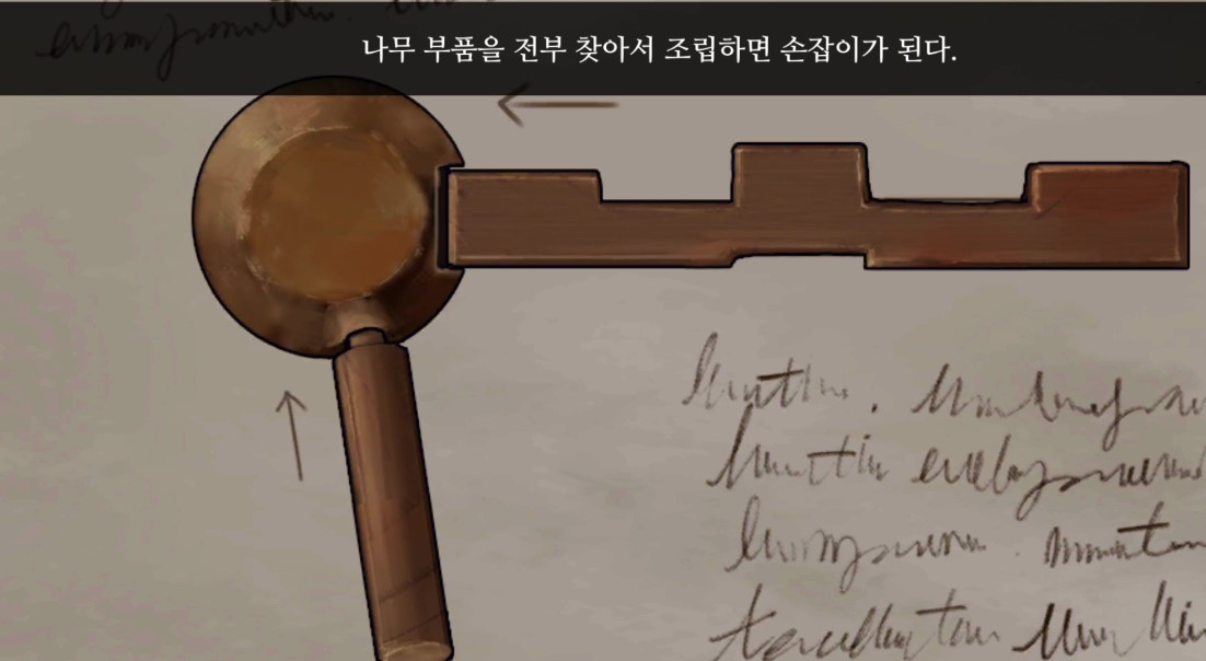 - 보드 위 그림에 나무부품 세 개를 조립한다 → 나무손잡이 획득