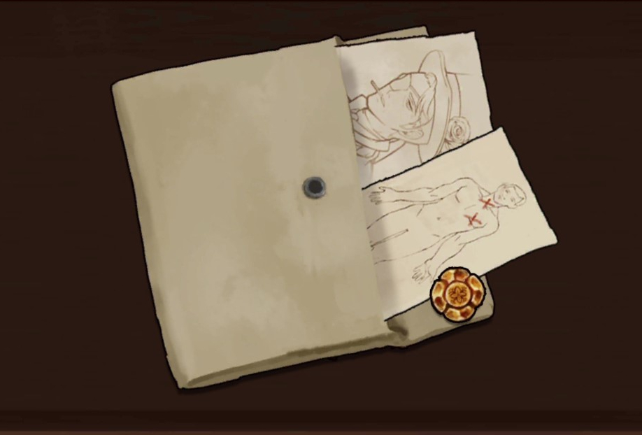 - 서류 안의 검시보고서, 몽타주, 장신구 획득