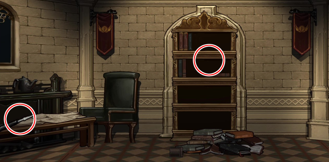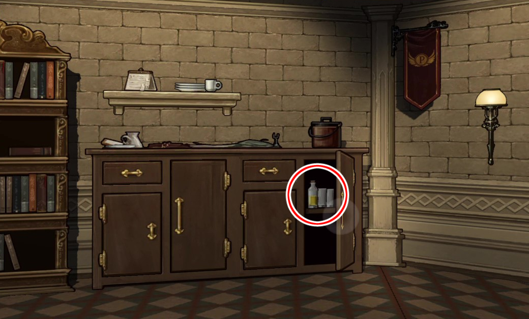 - 가운데 책상 위에서 컵을 치워 힌트 확인