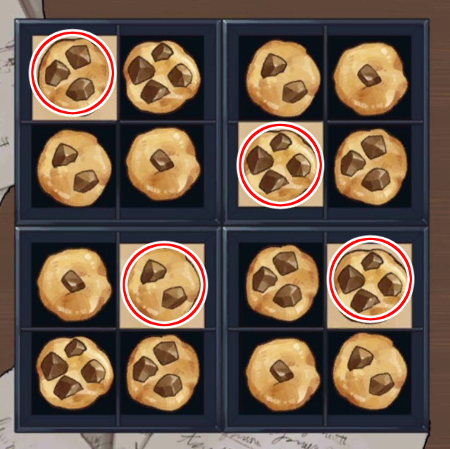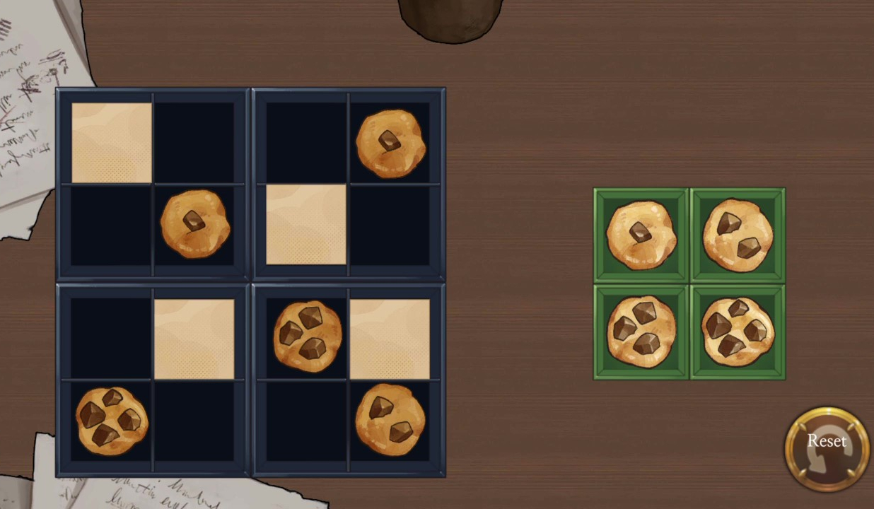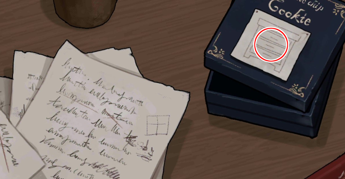 - 문 옆 책상 위 쿠키상자를 열어 퍼즐을 푼다