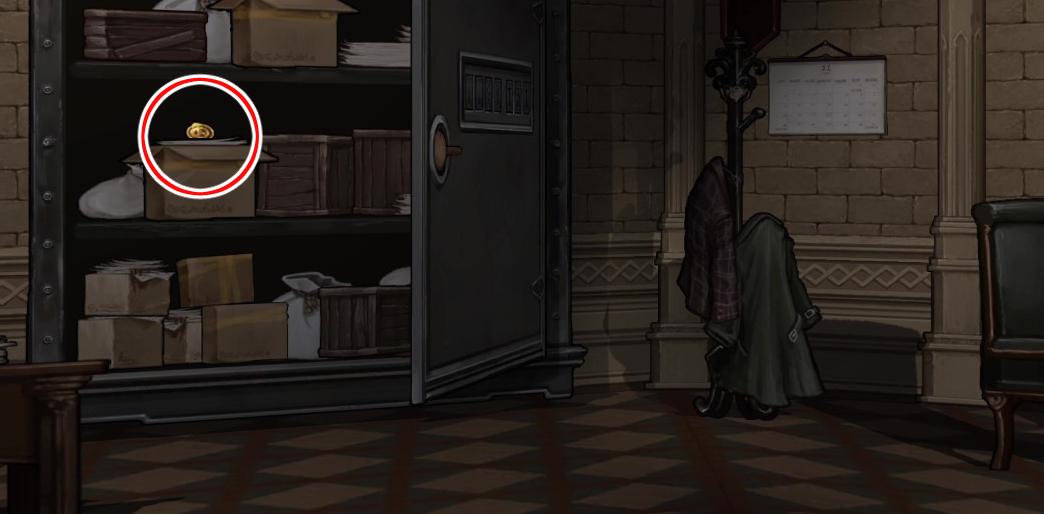 - 금고를 열어 페이퍼 나이프를 이용해 박스의 테이프를 뜯는다 → 뱃지 획득